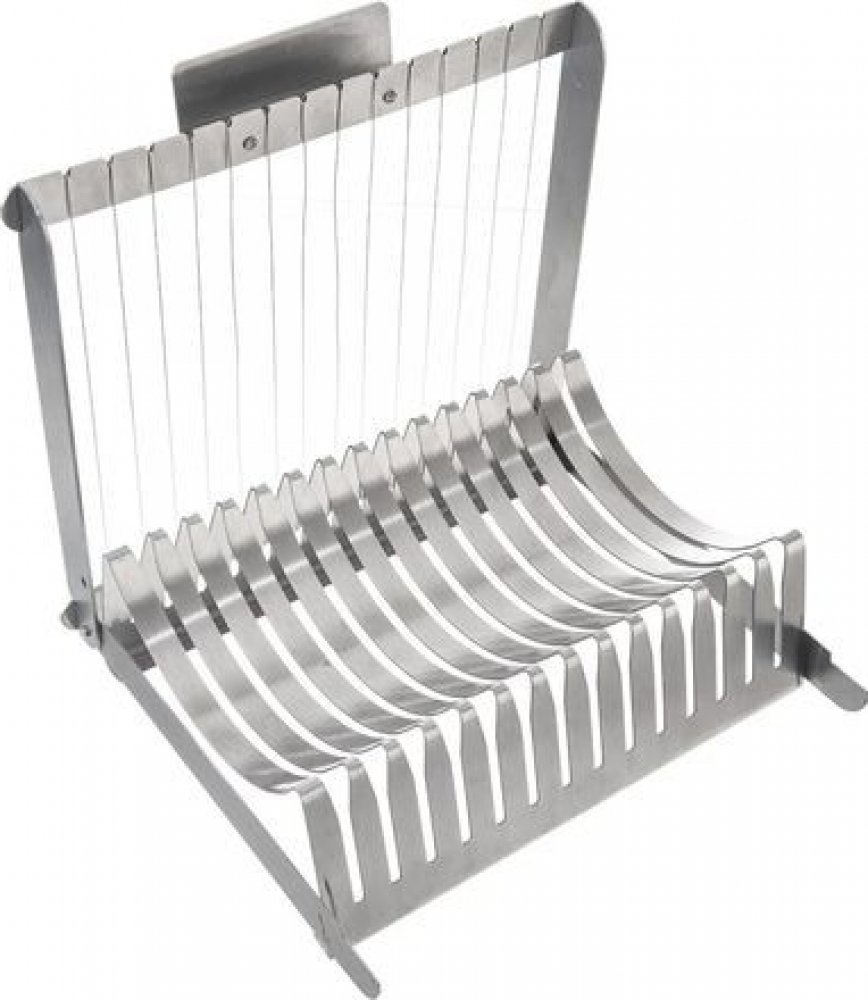 Příprava domácích houskových knedlíků není nic složitého. Nerezový kráječ Vám pomůže najednou nakrájet až 13 stejných plátků kynutých i bramborových knedlíků silných cca 1,4 cm, aniž byste museli sahat po niti nebo noži, který často čerstvý knedlík deformuje. Ke guláši, pečené kachně se zelím nebo výpečkům se špenátem plátky knedlíků, které budou jeden jako druhý, ocení všichni.Používejte na měkký - právě uvařený knedlík. Kráječ má velikost 21x21x7 cm. Jeho údržba je jednoduchá, stačí umýt v myčce nádobí a po zaschnutí vložit do zásuvky.