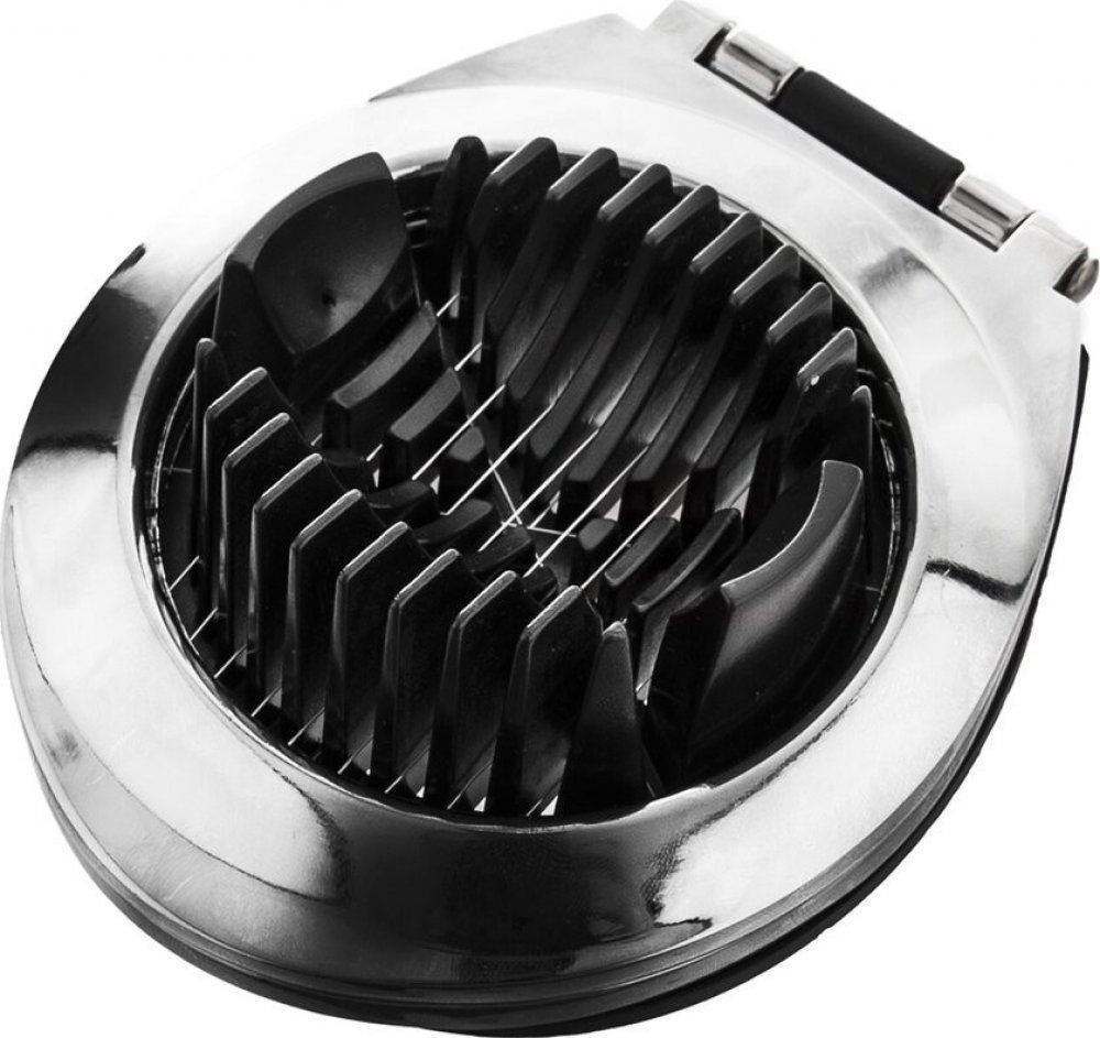 Kráječ vajec z luxusní řady LUXY Vám rychle a snadno nakrájí vajíčko na šestiny, na plátky, popřípadě na drobné kostičky. Materiál: pochromovaný kov, plast ABS. Rozměry: 9,5x11,5x4 cm. Vhodný do myčky na nádobí.