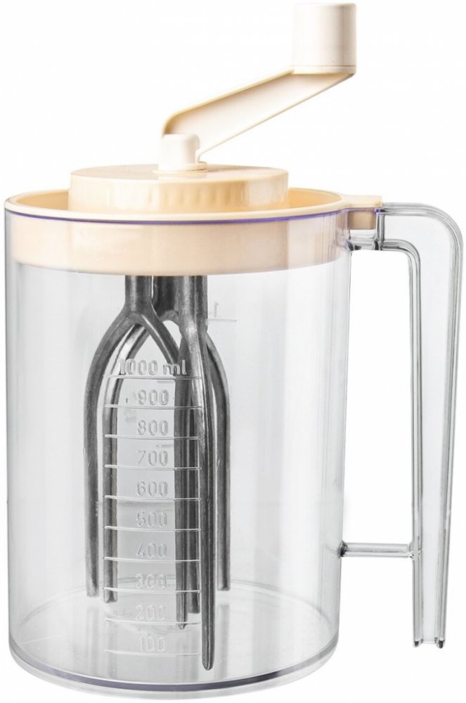 Šlehač kuchyňský ruční Vám pomůže našlehat smetanu, bílky do sněhové pěny, řídké těsto na moučníky... Využít můžete i samotnou nádobu s uchem a odměrkou. Materiál: plast, šlehací metly z eloxovaného hliníku. Snadná údržba. Není vhodný do myčky na nádobí. Rozměry: objem - odměrka 1 l, celkový objem nádoby 1,5 l, pr. 11,5 cm, v. 22 cm.