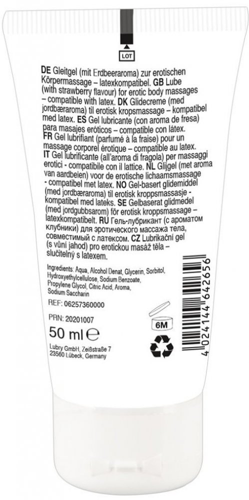 Lubrikační gel Lick-it 50 ml s příchutí jahod. Gel je založený na vodní bázi se zvlhčujícími účinky a nepoškozující kondomy. Lubrikační gel přizpůsobený Vašim erotickým potřebám, který nebarví a nedráždí pokožku. Gel je s příchutí a vůní jahod, je dermatologicky testován a splňuje nejpřísnější evropské normy. Lubrikační gel Lick-it 50 ml je snadno ve vodě rozpustný. Neobsahuje žádné oleje, barviva...