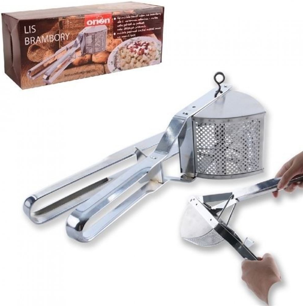 Nerezový lis na brambory pro lisování vařených brambor na přípravu bramborových těst. Můžete ho využít také pro odšťavování citrusů rajčat... Materiál: masivní kvalitní nerez. Rozměry: d. 30 cm š. 10 cm pr. otvorů 3 mm.