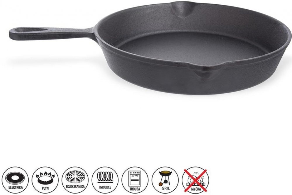 Pánev z litiny vám pomůže při přípravě chutných pokrmů z masa, zeleniny, brambor. Pánev s hotovým pokrmem můžete umístit na jakékoli prkénko a rovnou na ní jídlo servírovat. Ozvláštníte tak běžné stolování a podávání pokrmů. Doporučujeme používání kuchyňské chňapky. Můžete připravovat pokrmy v troubě, na sporáku i na přímém ohni. Vhodná na indukci, ale doporučujeme ověřit si možnosti vašeho induk...