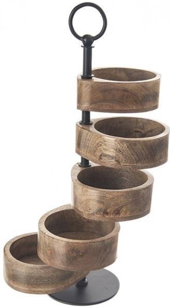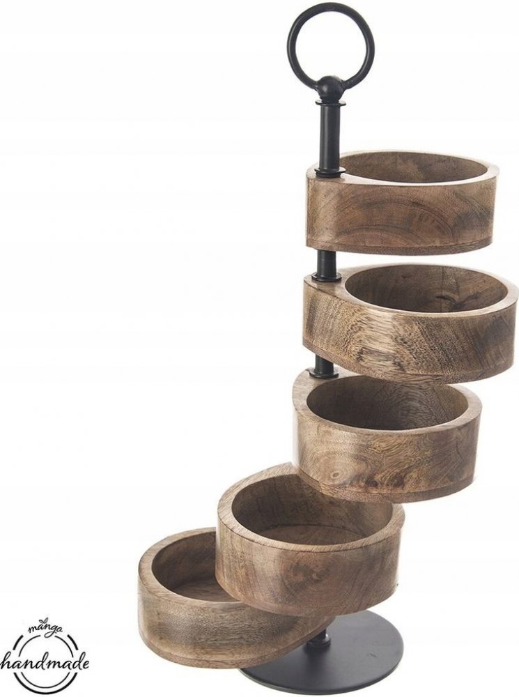 Stojan pro servírování oříšků, brambůrků, sušenek, bonbónu, sušeného ovoce... Překvapíte své hosty netradičním servírováním a ušetříte místo na stole. Snadno se udržuje, stačí jej lehce otřít a je připraven k dalšímu servírování. Technické parametry: - Materiál: dřevo mango, kov - Rozměry: pr. misek 12 cm, v. 44,5 cm Jednou za čas natřete jedlým olejem. Je možné, že po tomto procesu mangové dřevo ...