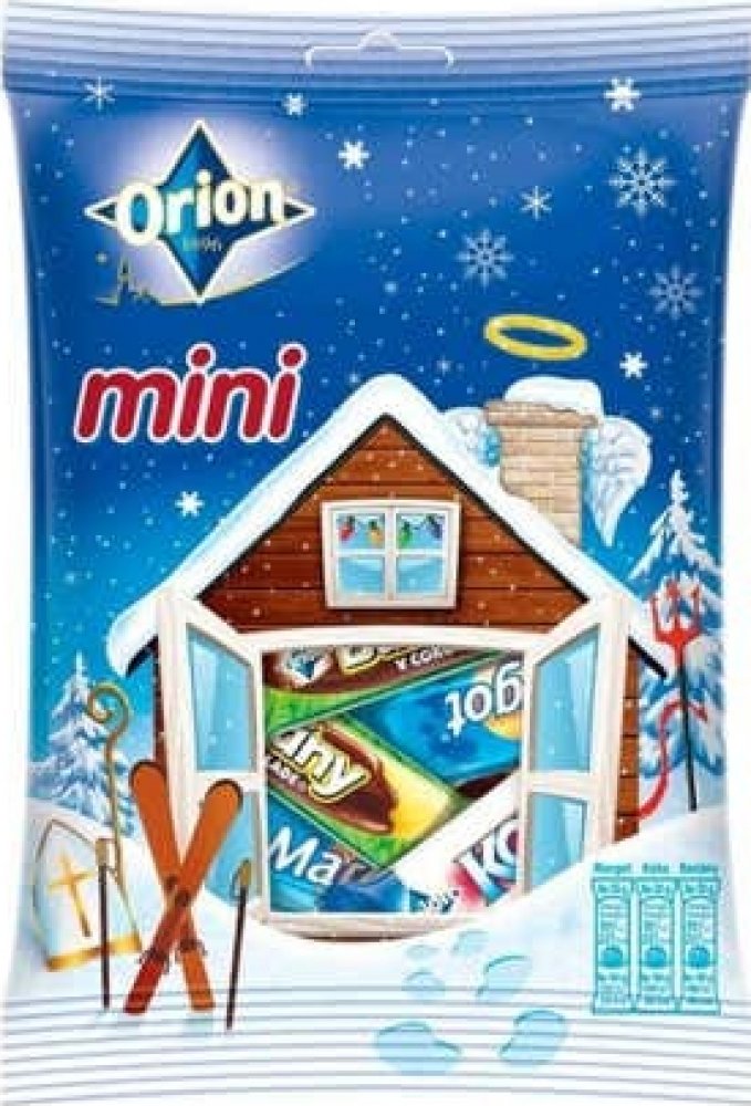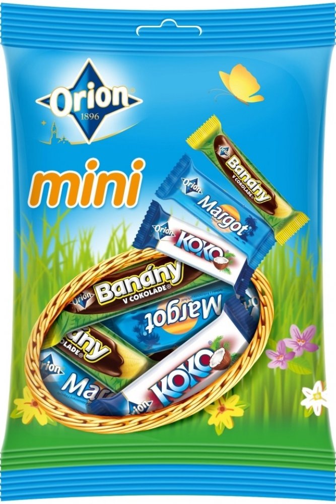 Směs cukrovinek (Sójová tyčinka 75 % máčená v hořké čokoládě 25 %, Želé 72 % s chutí banánů máčené v hořké čokoládě 28 %, Kokosová tyčinka 75 % máčená v mléčné čokoládě 25 %).