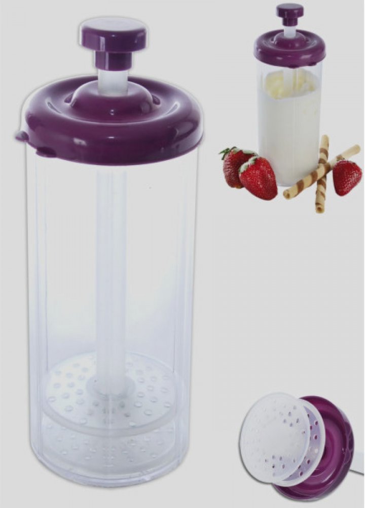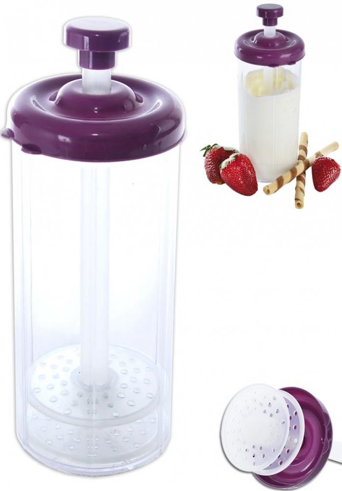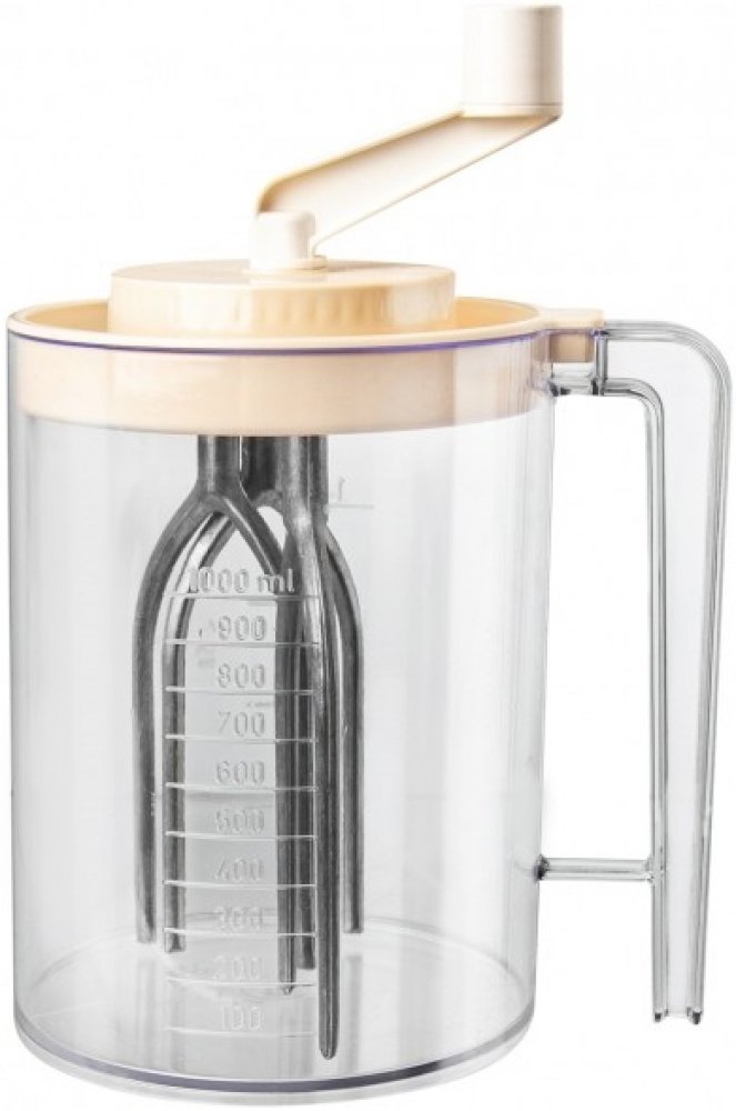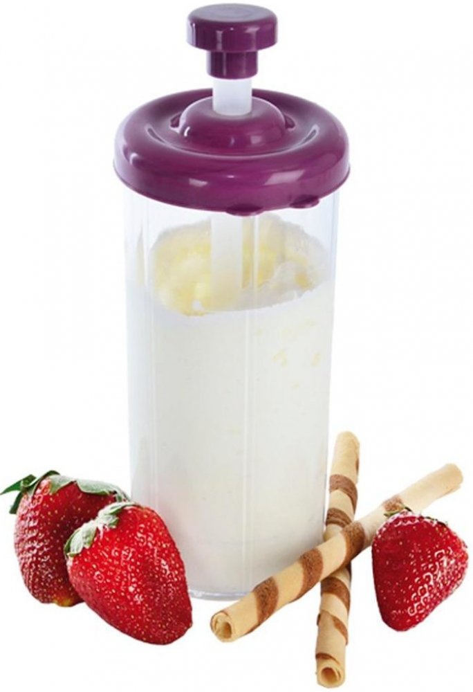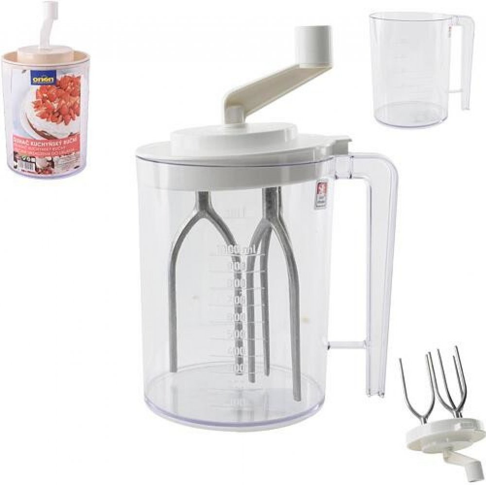 Plastový rychlošlehač s pístem pro přípravu šlehačky, vaječného sněhu, majonézy, vaječného krému, vaječných nápojů, smetany i másla. Samotná nádoba má objem 0,6 l, odolný plast snese teploty -20 °C až 65 °C.