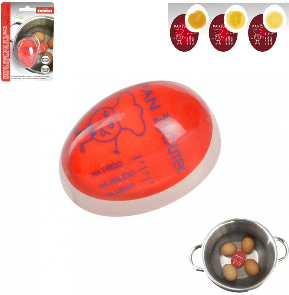 Už se Vám někdy stalo, že jste před snídaní nabízeli vařené vejce a nedokázali odhadnout, kolik času je nutno k jeho uvaření do požadovaného stavu konzumace? Dobrá zpráva pro všechny - tuto nejistotu odbourá odborník na přípravu vařených vajec, náš pan Žloutek. Stačí jej vložit mezi vařená vejce přímo do hrnce a pak jen čekat, kdy Vám ukáže požadovaný stupeň uvaření. Zjistíte to pomocí tepelného indikátoru uvnitř tohoto výtečného pomocníka, kdy červená barva ustupuje podle délky strávené ve vařící vodě a uk