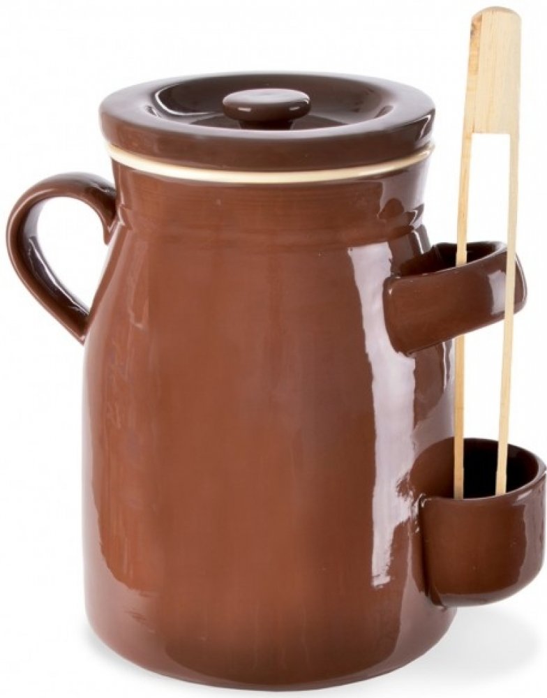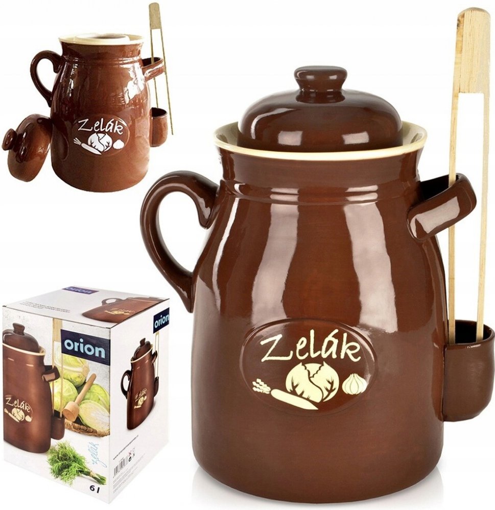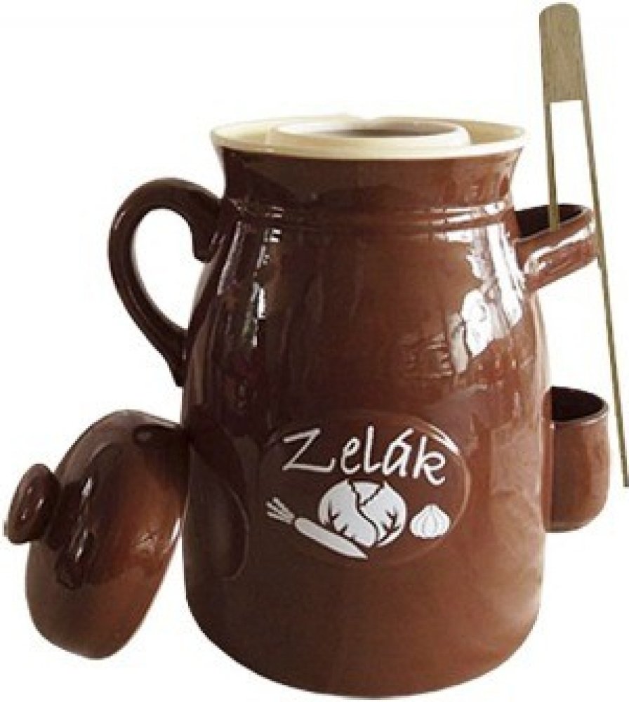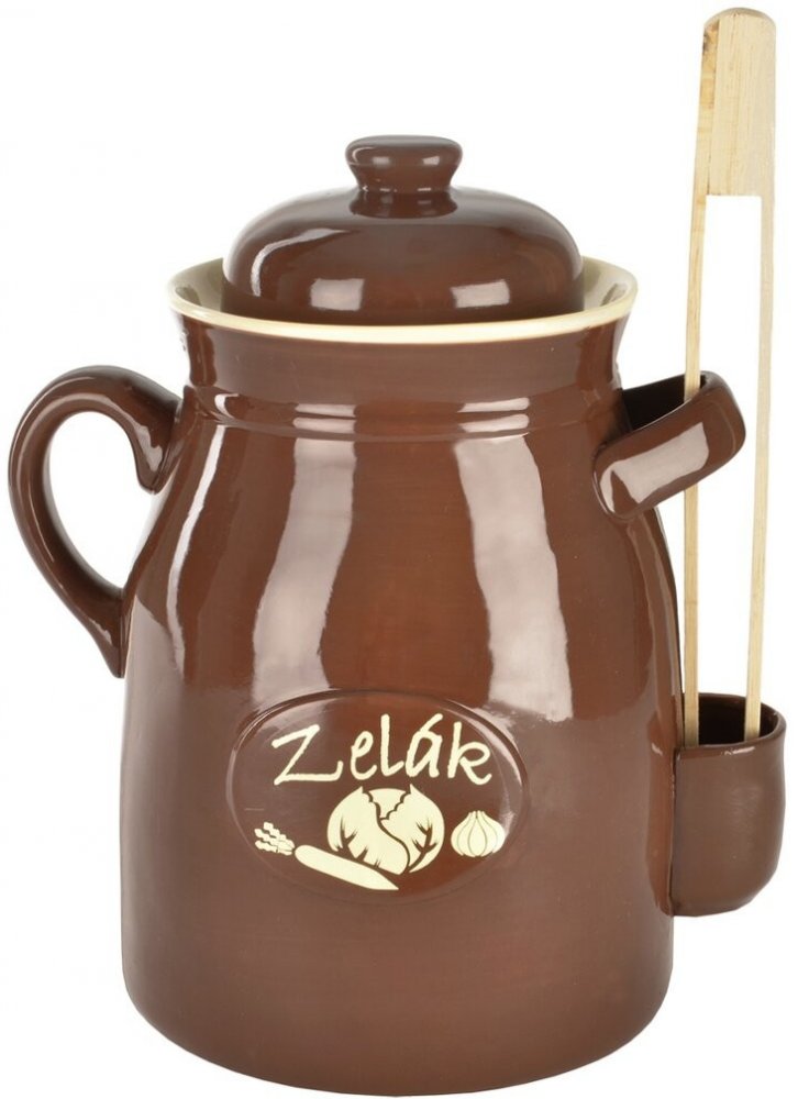 Hrnec kyseláč najde všestranné uplatnění ve Vaší kuchyni. Slouží zejména k přípravě doma nakládaných pokrmů, jako jsou kvašáky, zelí, utopenci, ryby, sýry a další lahůdky nakládané do oleje nebo octového nálevu. Hrnec je vyroben z užitkové glazované keramiky, která nepropouští světlo, udržuje stálou teplotu a potraviny pak získají lepší podmínky pro dozrání a správnou chuť. Součástí hrnce je keramická poklička a dřevěné kleště na vyjímání uložených potravin. Hrnec má 2 boční ucha a kapsu na zachycení odkapávající tekutiny z kleští. Navíc je opatřen žlábkem, do kterého nalijete vodu pro zajištění správného procesu kvašení. Rozměry: objem 6 l, pr. 20,5 cm, v. 32 cm.