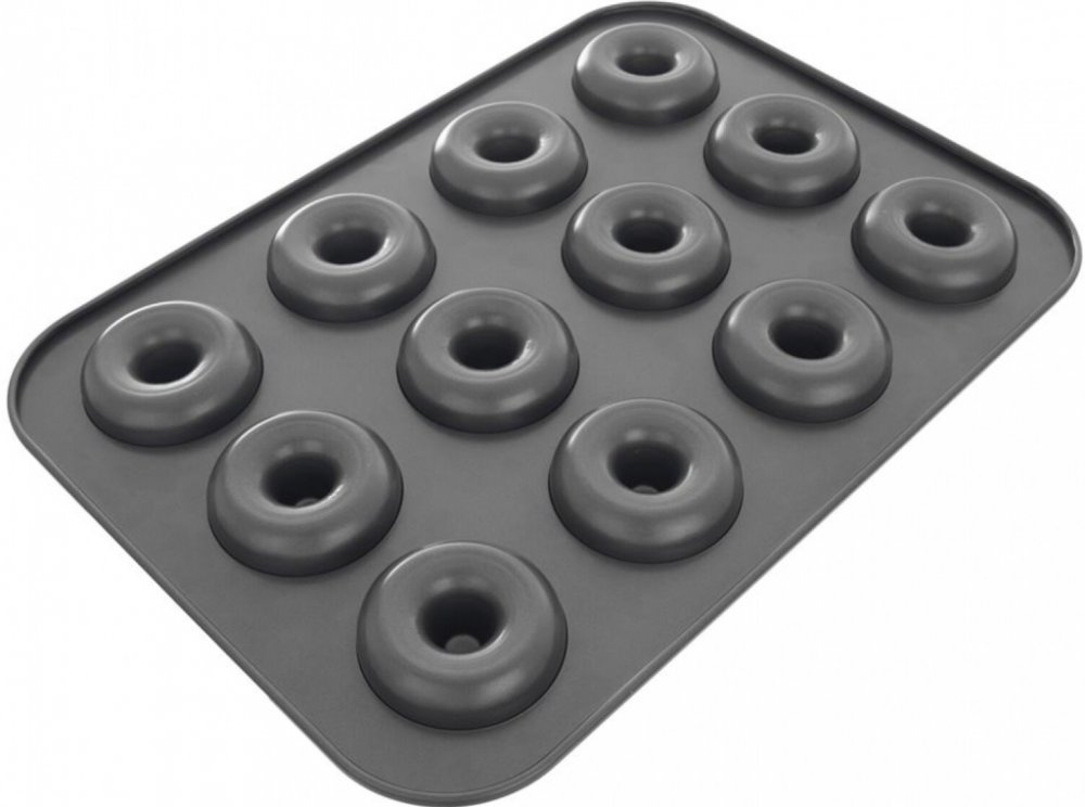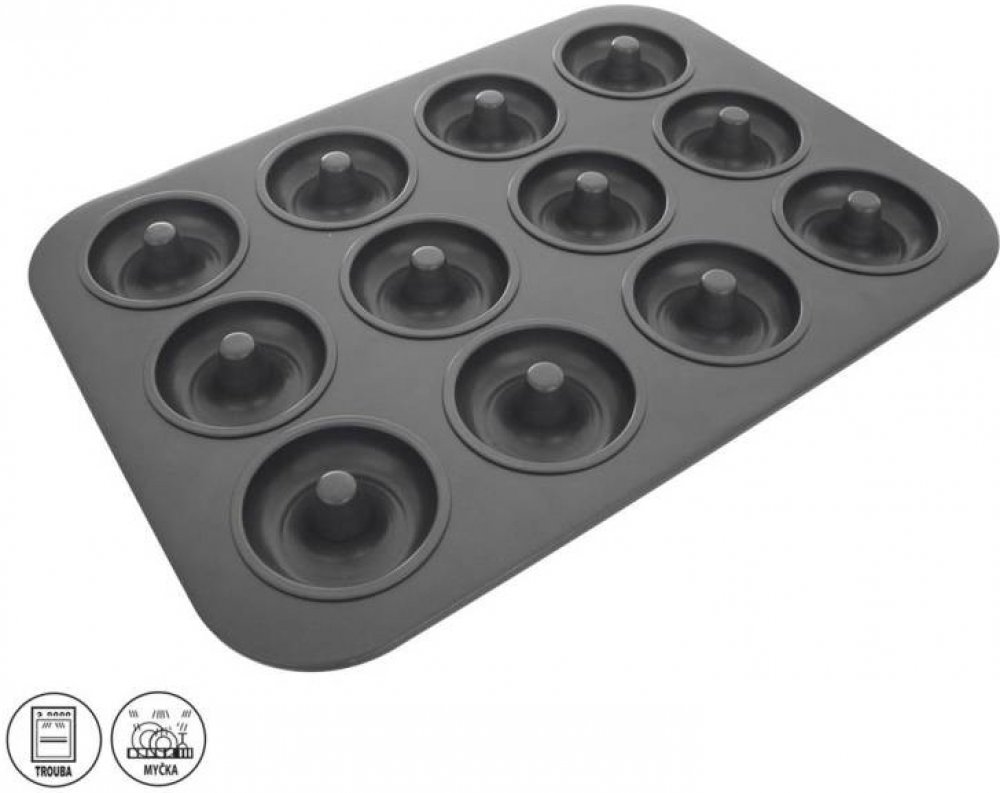 Plech na koblížky/donuty s kvalitním nepřilnavým povrchem, který brání připečení, a to i při použití minimálního množství tuku.