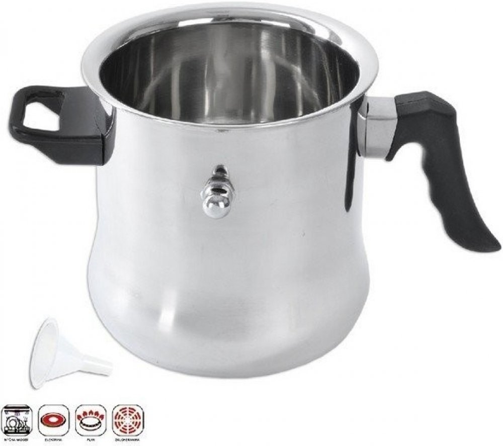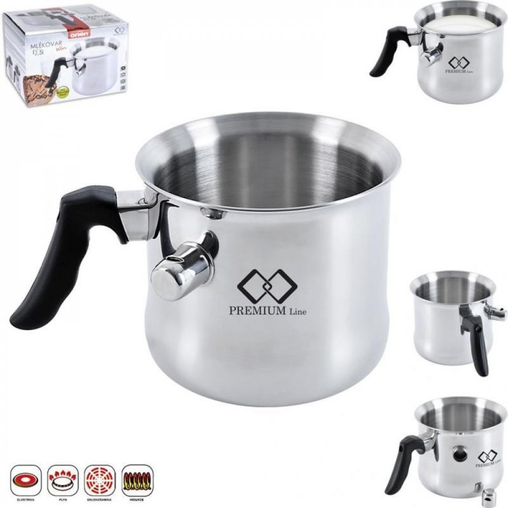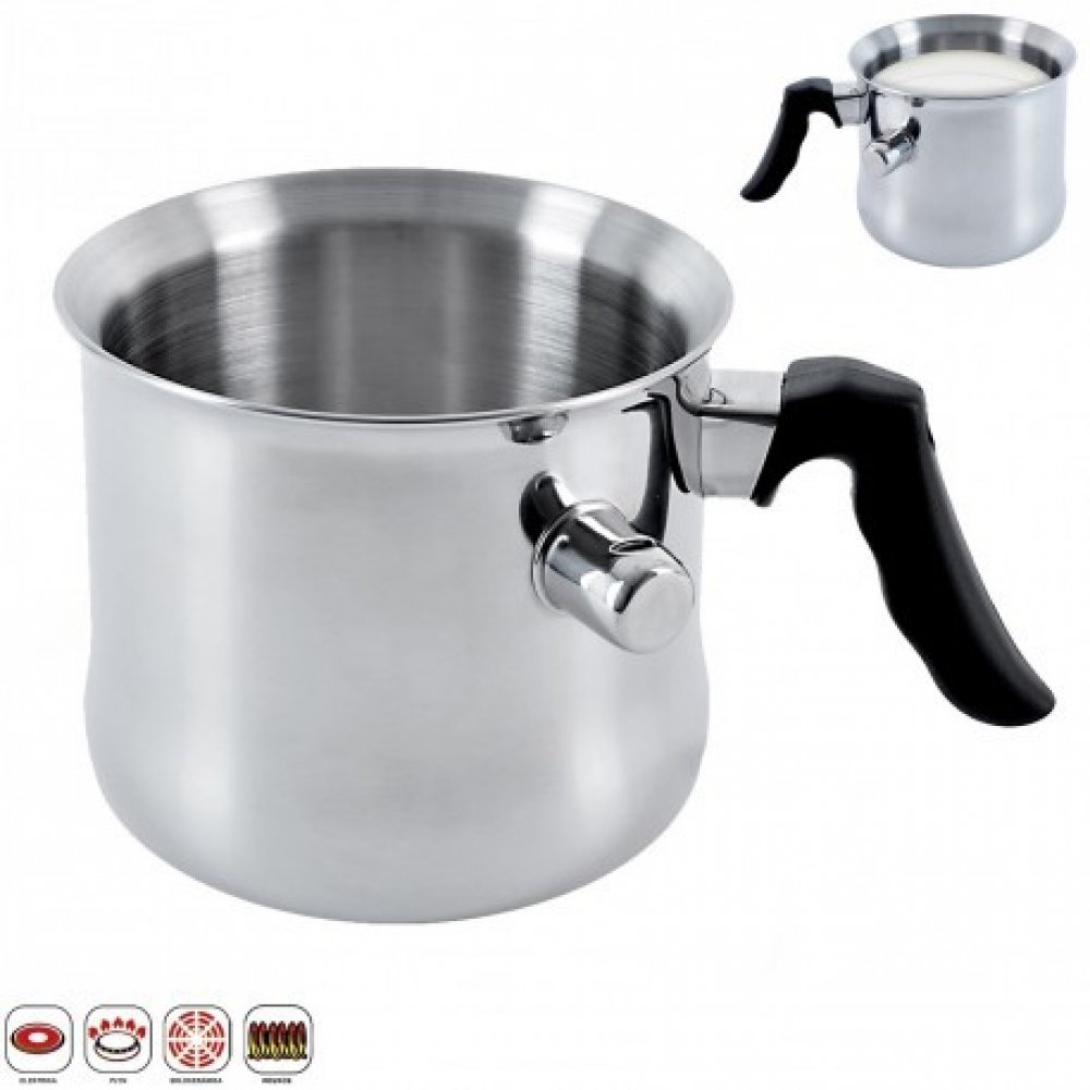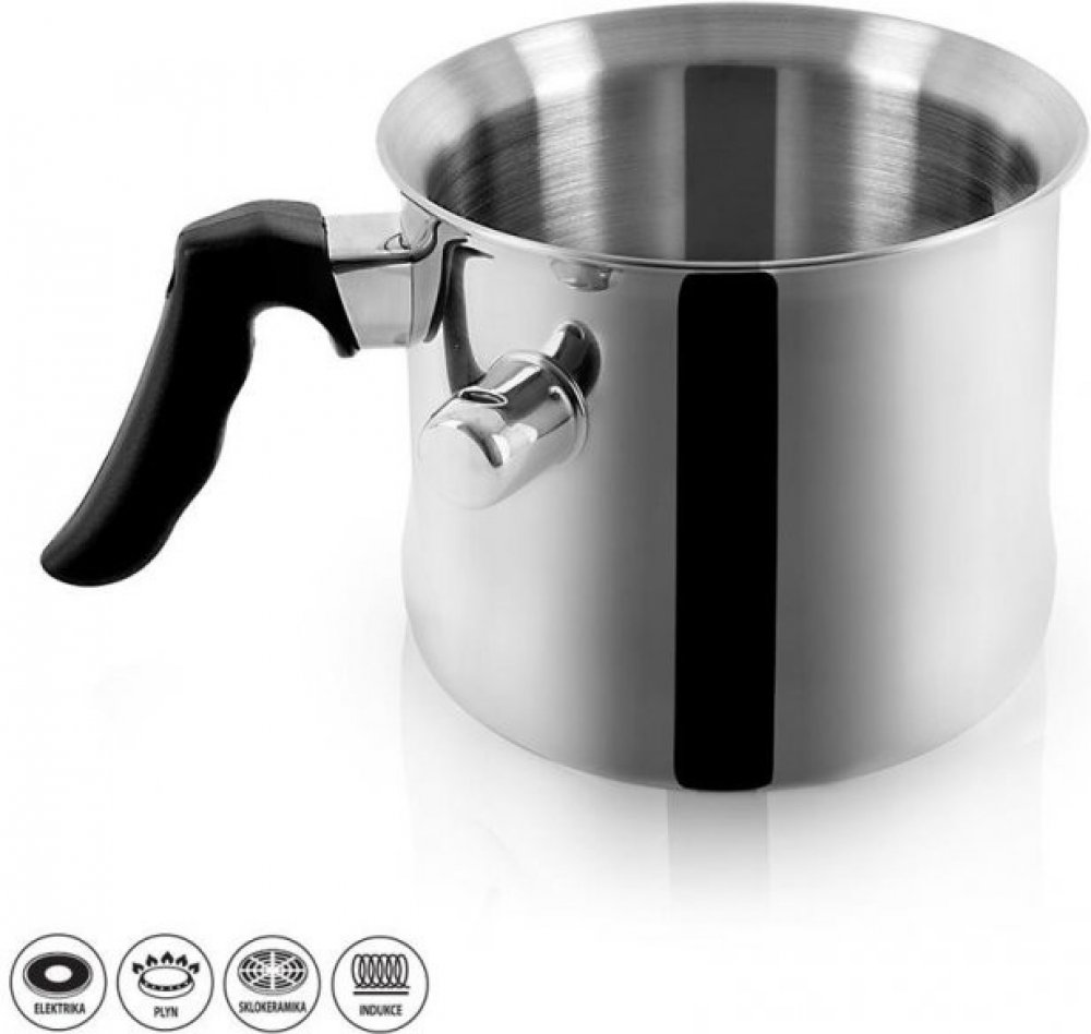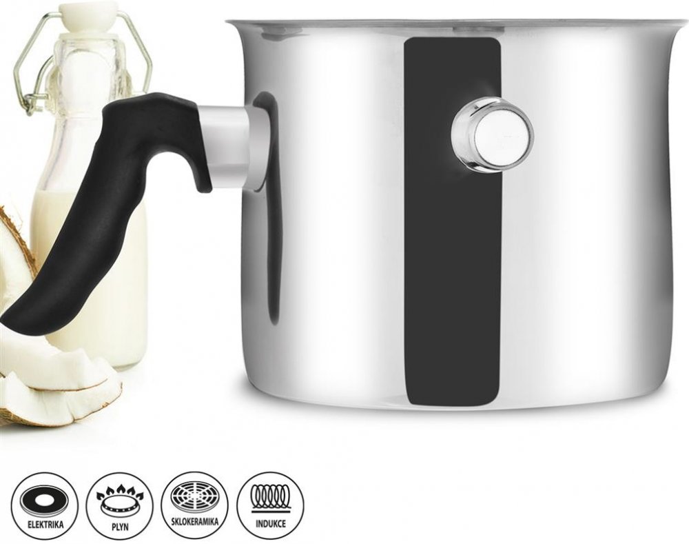 Podrobnosti o produktu OR111899 Mlékovar bez pokličky z kvalitní nerez oceli má dvojitou stěnu nádoby, do které lijeme vodu, aby zabránila připálení mléka i různých omáček, pudinků. Jistě oceníte tvarované plastové držadlo mlékovaru. Pískání píšťalky zabudované v boku hrnce upozorní na kypění mléka. Lze použít na elektrickém i plynovém sporáku, sklokeramické desce i indukci. Sendvičové dno zajistí rovnoměrný rozvod tepla, skvěle přilne k desce spotřebiče, což je důležité především u vaření na indukci. Rozměry: objem 2,5 l, pr. 18 cm, v. 13 cm.Mlékovar bez pokličky z kvalitní nerez oceli má dvojitou stěnu nádoby, do které lijeme vodu, aby zabránila připálení mléka i různých omáček, pudinků. Jistě oceníte tvarované plastové držadlo mlékovaru. Pískání píšťalky zabudované v boku hrnce upozorní na kypění mléka. Lze použít na elektrickém i plynovém sporáku, sklokeramické desce i indukci. Sendvičové dno zajistí rovnoměrný rozvod tepla, skvěle přilne k desce spotřebiče, což je důležité především u vaření na indukci. Rozměry: objem 2,5 l, pr. 18 cm, v. 13 cm.
