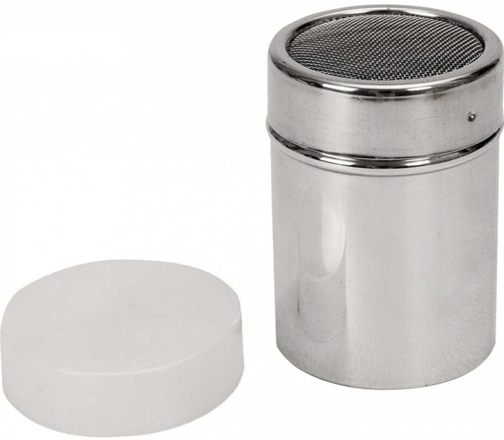 Cukřenka se sítkem a víčkem. Jemné sítko je vhodné např. na moučkový cukr.Pr. 7 cm, objem 0,3 l.