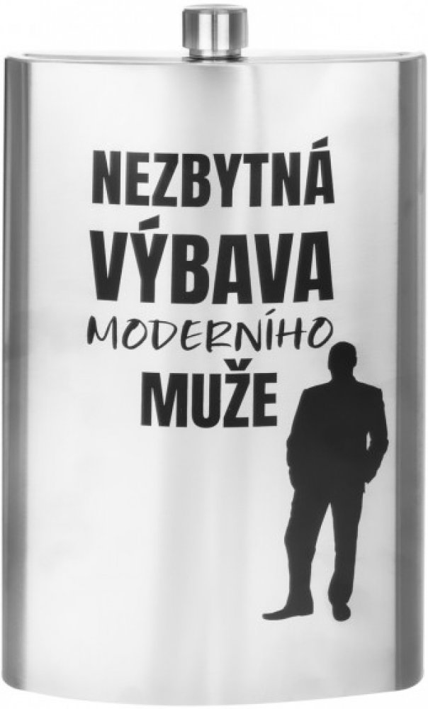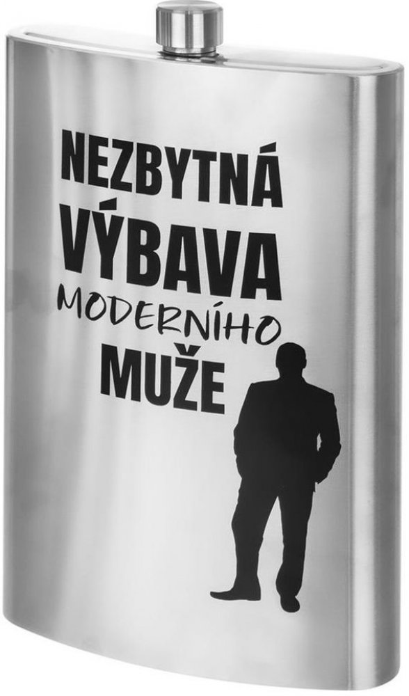 Hledáte-li vtipný a originální dárek pro moderního muže, pořiďte mu tuto krásnou maxi placatku. Zdobí ji dekor s příhodným nápisem NEZBYTNÁ VÝBAVA. Je vyrobená z kvalitní nerezové oceli a její šroubovací uzávěr zabraňuje vylití obsahu nádoby.