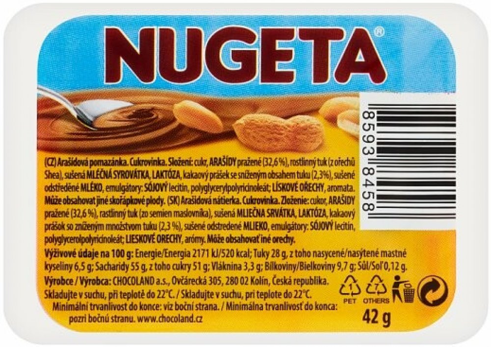 Cukr, arašídy 31 %, rostlinné tuky (palmový, Shea), laktóza, sušená mléčná syrovátka, kakaový prášek se sníženým obsahem tuku, emulgátory (sójový lecitin, polyglycerylpolyricinoleát), aromata