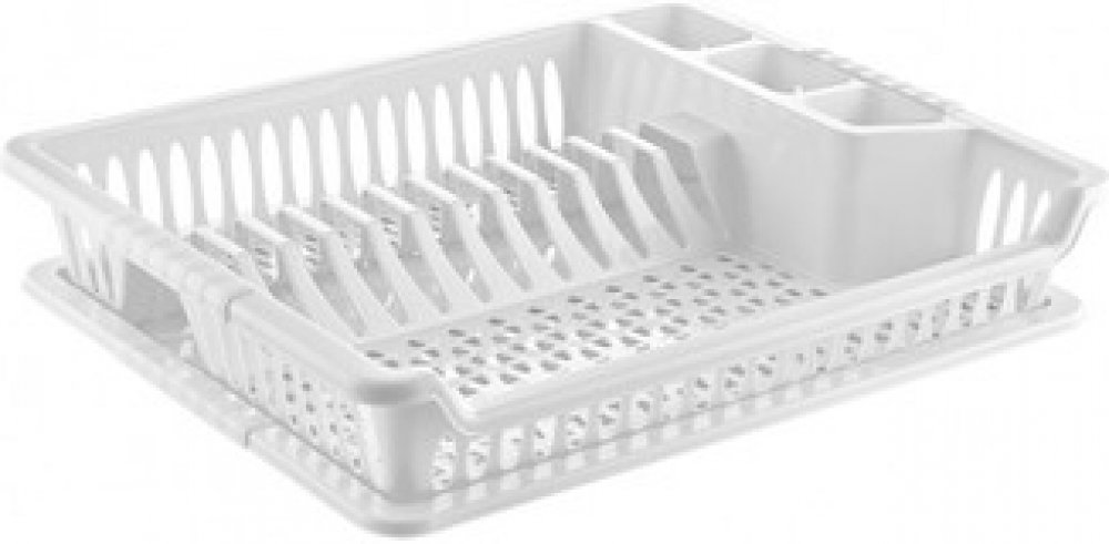 Odkapávač na nádobí s tácem. Členěný - sekce na příbory, talíře a na ostatní nádobí. Materiál: plast. Barevné varianty. Rozměry: 45x37x8,5 cm.