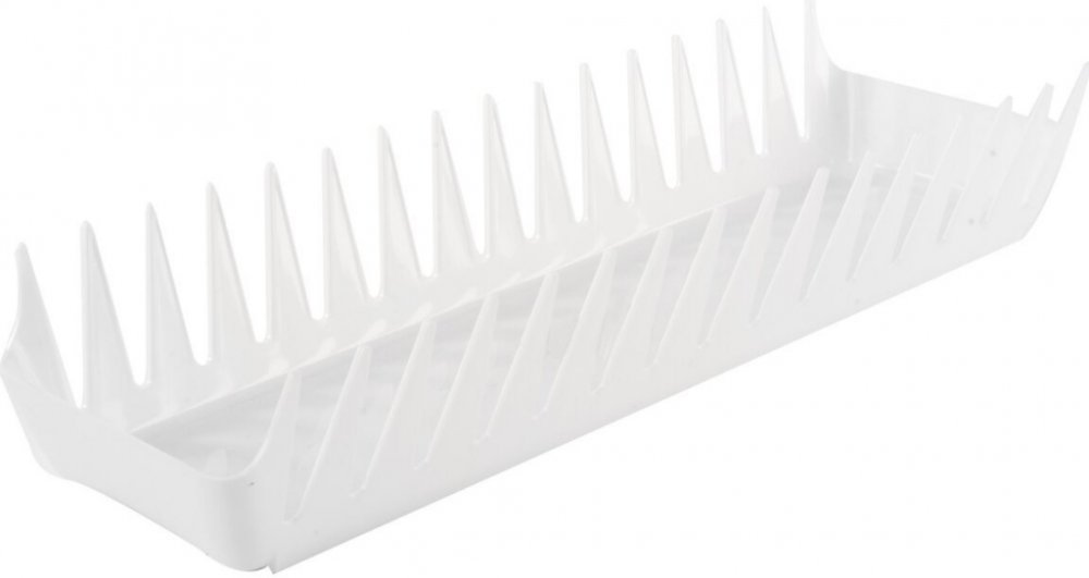 Tradiční odkapávač na talíře ve tvaru ježka. Bodliny slouží k umístění talíře. Voda je pak částečně zachytávána ve spodní nádobě odkapávače.