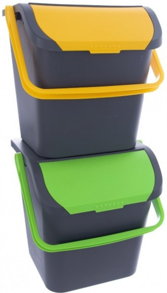 Odpadkový koš je základem každé domácnosti. Tento plastový koš má praktické ucho na přenášení a žluté víko - určen pro třídění plastu. Pořídíte-li si více kusů, můžete je využít i jako soupravu na tříděný odpadu. Koše lze prakticky stohovat na sebe, takže nezaberou tolik místa na podlaze.
