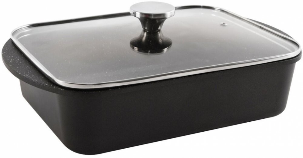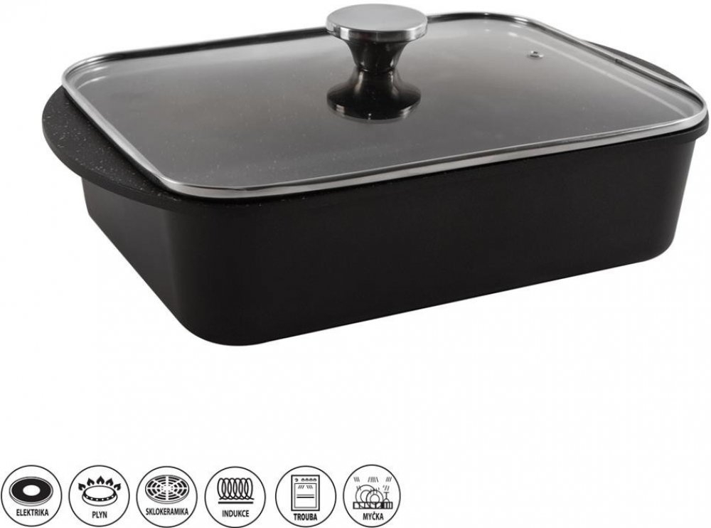 Všestranný pekáč s nepřilnavým povrchem o rozměru 35x22,5x8 cm má po přiklopení poklicí na výšku 12 cm. Hliníkový korpus je potažen kvalitní nepřilnavou vrstvou PFLUON GRANIT, která umožňuje pečení s minimem tuku, ale i snadnou údržbu a možnost mytí v myčce.