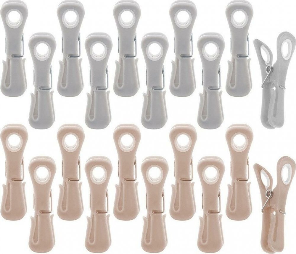 Pevné prádelní kolíčky spolehlivě udrží prádlo na šňůře. Sada 20 ks. Jsou opatřeny háčkem, který můžete využít pro uchycení úzkých ramínek tílek, šatů, poutek kalhot... Dále mají očko, do kterého může