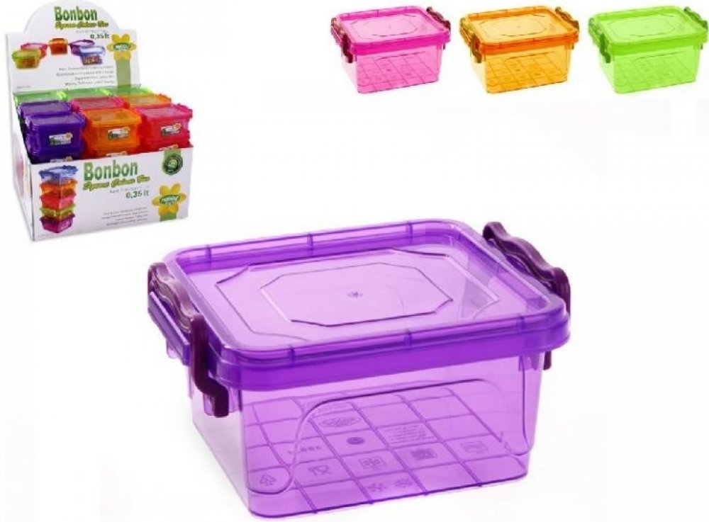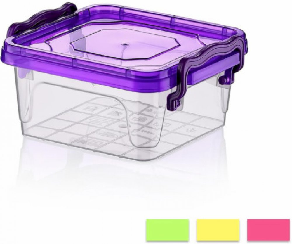 Nízká hranatá barevná dóza z kolekce BON se hodí k uskladnění potravin ve spíži, v kuchyňských poličkách nebo v lednici. Kromě toho ji můžete využít i k převážení pokrmů, jakou jsou například polévky, zeleninové saláty nebo jogurt s müsli.Má objem 350 ml a je vyrobená z kvalitního plastu. Navíc je transparentní, díky čemuž ihned vidíte, co je uvnitř. Pevné uzavření nádoby zajišťuje barevné víko se dvěma klipy. Lze ji použít i jako úložný box na různé drobnosti v koupelně, pracovně či dětském pokoji. Lze ji využít bez víčka i k ohřevu pokrmů v mikrovlnné troubě a umývat v myčce.Dodávané barvy závisí na aktuálních skladových zásobách. Požadovanou barvu lze pohodlně vybrat i na nejbližší prodejně.