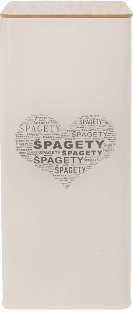 Designová hranatá plechová dóza se stylovým nápisem ve tvaru srdce pro uskladnění špaget, kromě těch klasických lze do ní uložit i spaghettini, parpadelle nebo bucatini.