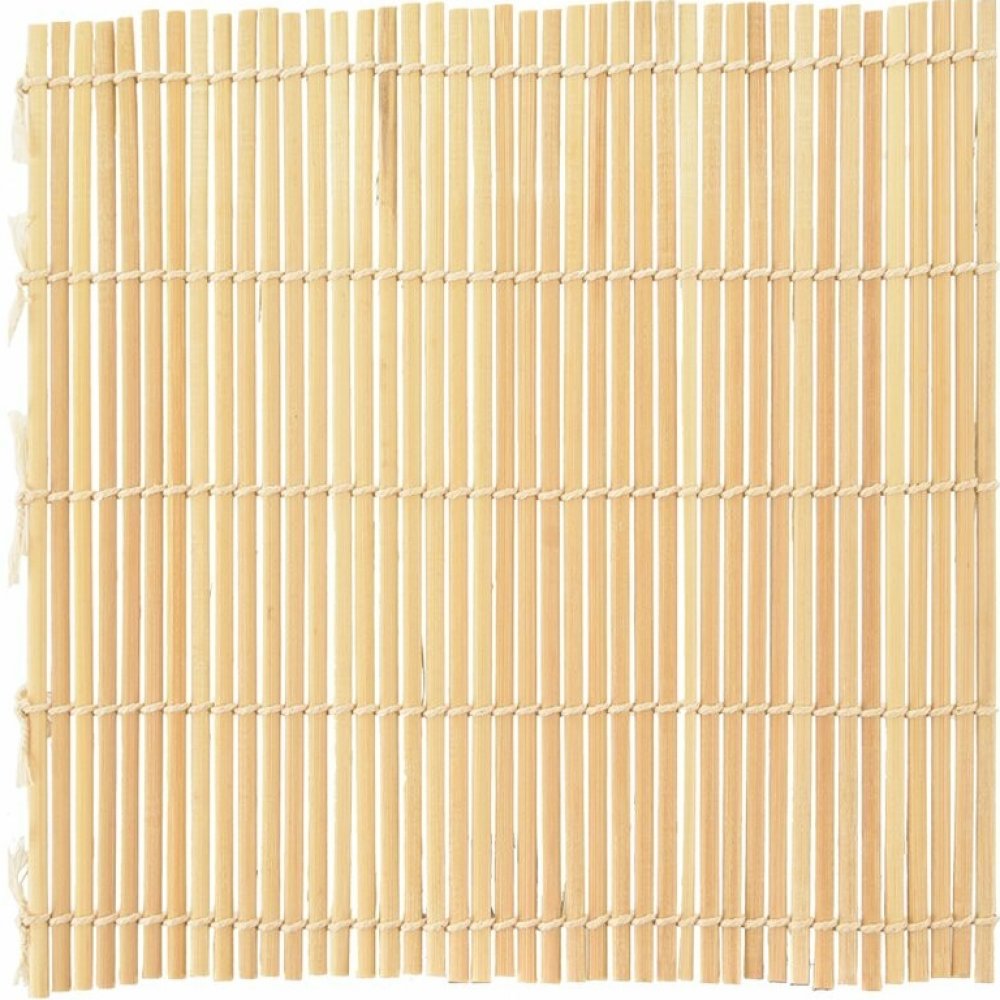 Bambusová podložka na ruční rolování Sushi pro přípravu Maki Sushi. Praktická podložka z bambusu je pro ruční rolování naprosto ideální. Na podložku se rozloží plátky nori, na ně pak ostatní ingredience a vše se jednoduchým způsobem sroluje. Pokud jste si zamilovali tuto japonskou pochoutku a chcete si to zkusit doma, tato podložkaby vám neměla v kuchyni chybět. Materiál: babusové dřevo, provázek. Opakované použití. Z jedné strany oblé tyčinky, z druhé strany rovné. Lze použít také jako prostírání nebo dekoraci. Rozměry: 24x24 cm. Na plátky mořské řasy nori se nanáší vrstva připravené rýže nišiki, na ni tenká vrstva pasty z wasabi a další ingredience – například různá zelenina, avokádo, syrový nebo uzený losos, míchaná vejce, kaviár apod. Vše se pak sroluje, nechá vychladit a váleček se rozkrájí na kolečka. Po použití nemáčejte, otřete vlhkou houbičkou, nechte dobře usušit.