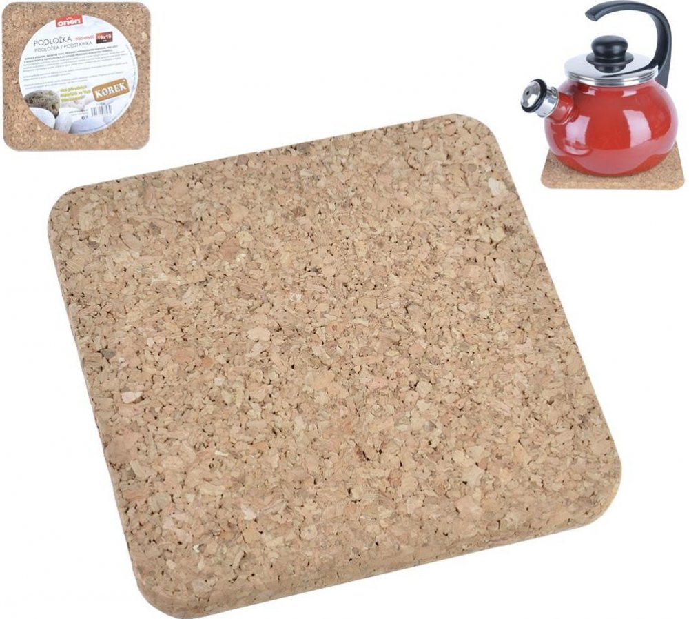 Korková podložka využívá všech vlastností přírodního materiálu. Je příjemná na dotek, tvarově stálá, se skvělými tepelně izolačními vlastnostmi, které zajistí udržení teploty Vašeho talíře, případně odizoluje horké nádoby při jejich odkládání. Materiál: korek. Čtvercový tvar. Rozměry: 19x19x1 cm.