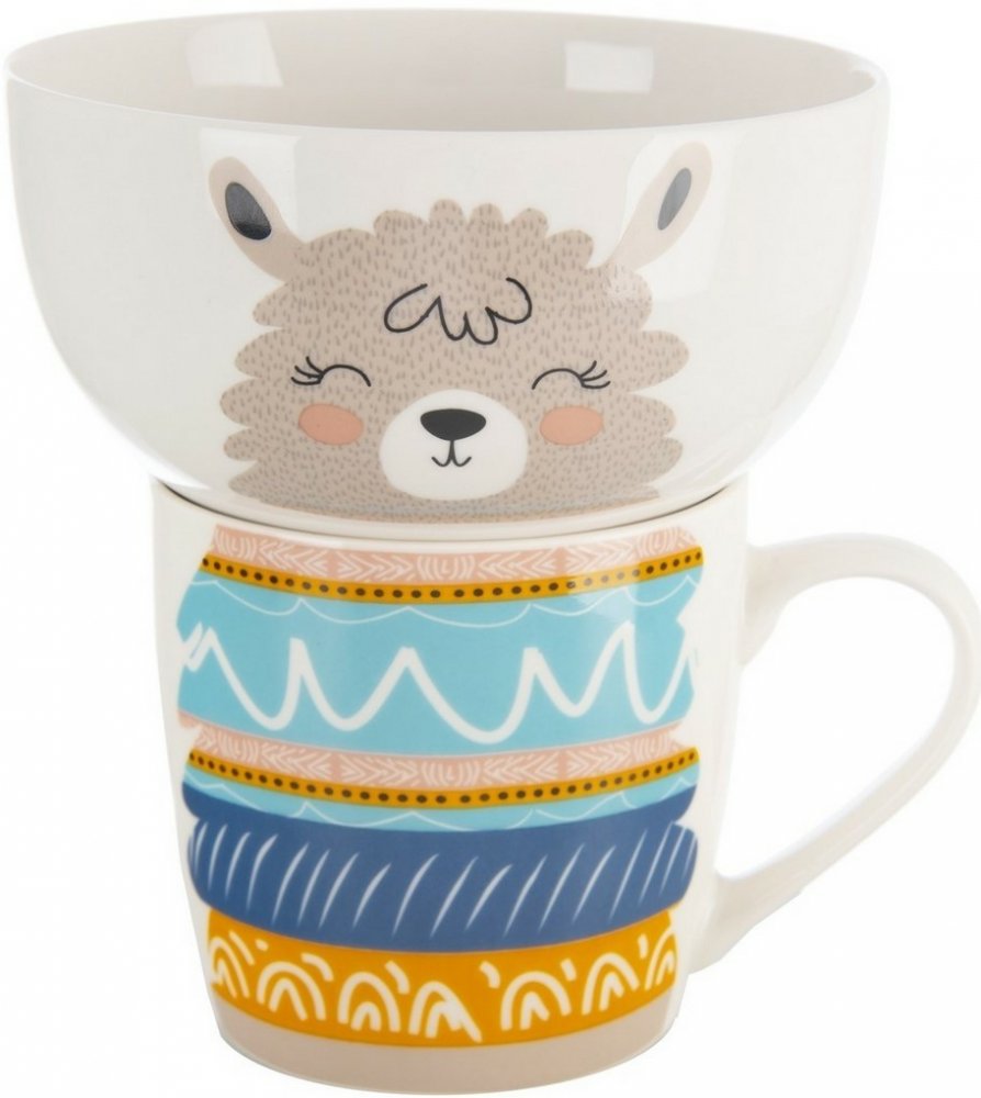 Tato rozkošná sada porcelánového hrnku a misky Lama od značky Orion přináší radost na každý stůl. Hravý motiv jihoamerické lamy propojuje misku s hrnkem tak, že spolu tvoří krásný celek, který ocení nejen děti, ale i dospělí. Hrnek o objemu 350 ml je ideální na čaj, kávu s mlékem nebo kakao, zatímco miska o objemu 600 ml perfektně poslouží na cereálie, ovoce, jogurt nebo salát. Díky tomuto propoj...