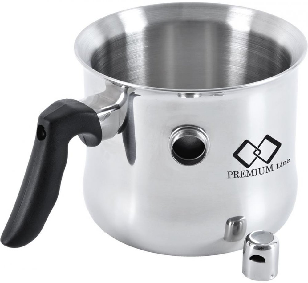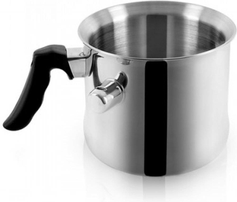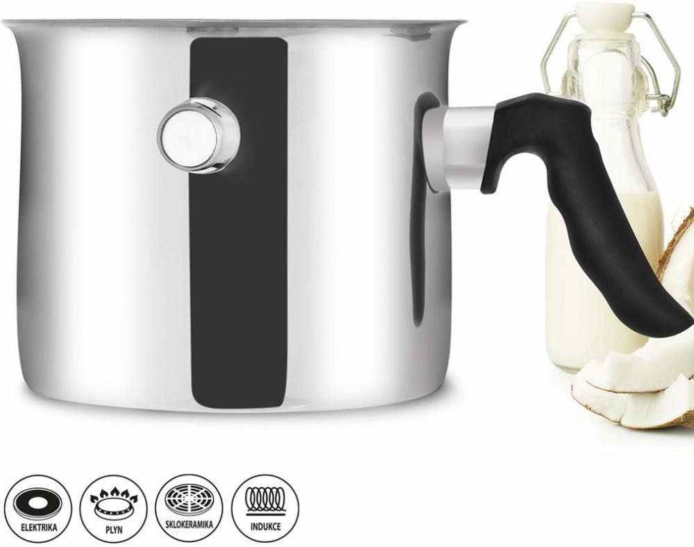 Mlékovar bez pokličky z kvalitní nerezové oceli má dvojitou stěnu nádoby, do které se lije voda. Díky tomu zabráníte připálení mléka a různých omáček nebo pudinků. Jistě oceníte tvarované platové držadlo mlékovaru. Pískání píšťalky zabudované v boku hrnce upozorní na kypění mléka. Lze použít na elektrickém i plynovém sporáku, sklokeramic...