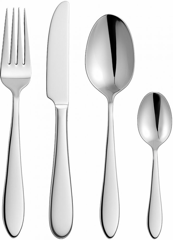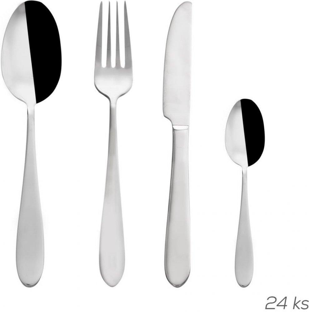 Lesklé nerezové příbory v jednoduchém, minimalistickém designu a elegantní zaoblenou spodní částí, která se příjemně drží v ruce.
