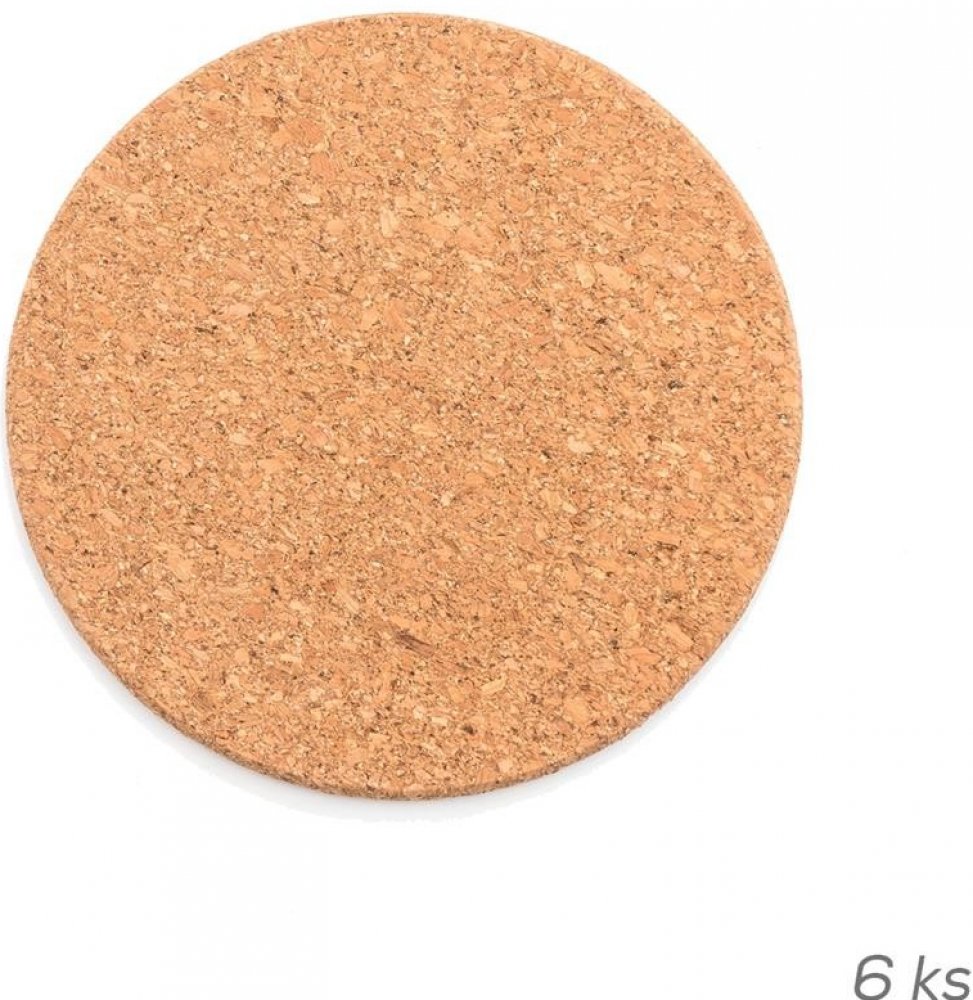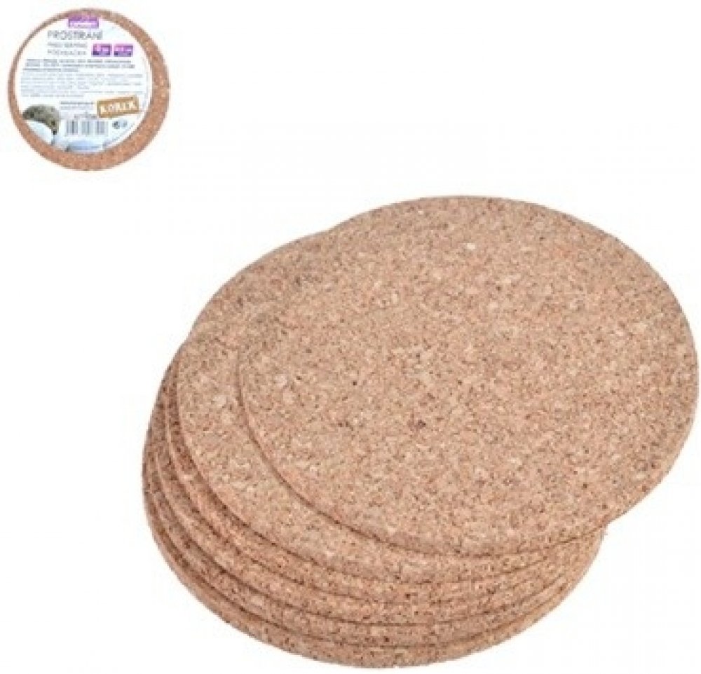 Prostírání korkové, kolečko - sada 6 ks.Rozměr: průměr 9,5 cm, tloušťka 0,3 cm. Korkové podložky využívají všechny vlastnosti přírodního materiálu. Jsou příjemné na dotek, tvarově stálé, se skvělými tepelně izolačními vlastnostmi, které zajistí udržení teploty Vašeho talíře, případně odizolují horké nádoby při jejich odkládání.