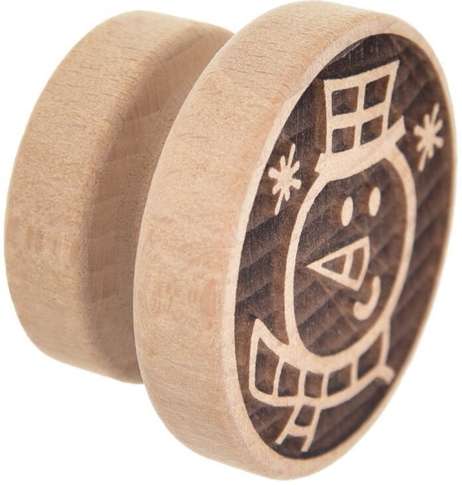 Razítko na výrobu domácích sušenek. Velmi rychle a snadno vytvoříte ornament na vykrojeném kolečku z těsta. Po upečení vypadají skvěle a potěší nejen děti. Materiál: bukové dřevo. Rozměry: pr. 5,5 cm. v. 3,3 cm. Není vhodné do myčky. Na vykrojení můžete využít kolečko 127452.