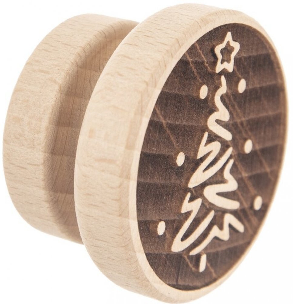 Zábava pro velké i malé pekaře s originálním razítkem z bukového dřeva. Do vyváleného těsta, ideálně takového, které neobsahuje kypřící přísady nebo sodu, stačí otisknout razítko a kulatou vykrajovačkou průměru 5,5-6 cm vykrojit sušenku. Bude mít krásný plastický reliéf zobrazující vánoční stromeček, který potěší vaše milované nejen v době Adventu, ale i u odpolední kávy nebo dobrého čaje po víkendovém obědě.