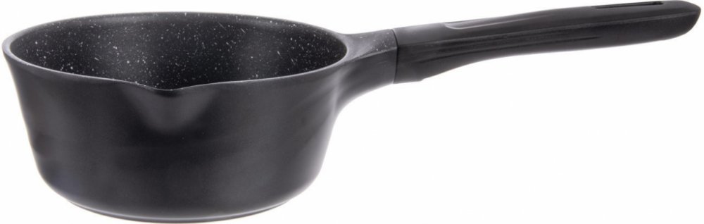 rendlík na plynovou, elektrickou, indukční a sklokeramickou varnou desku - kulatý tvar, objem 1,6 l, bakelitová rukojeť, silné a sendvičové dno, vylévací okraj a možnost mytí v myčce, rozměry 8 × 18 × 37 cm (V׊×D), průměr 18 cm, černá barva (113349)