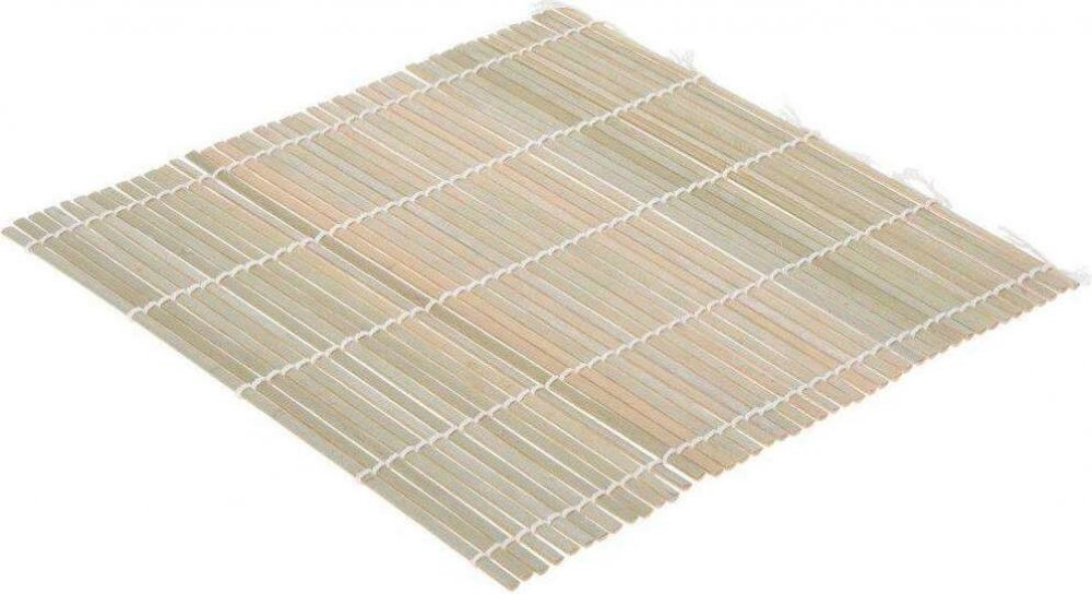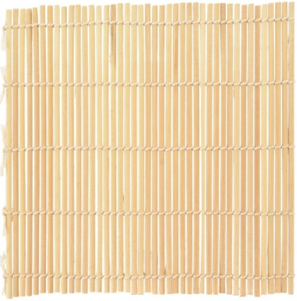Bambusová podložka na ruční rolování Sushi pro přípravu Maki Sushi. Praktická podložka z bambusu je pro ruční rolování naprosto ideální. Na podložku se rozloží plátky nori, na ně pak ostatní ingredience a vše se jednoduchým způsobem sroluje. Pokud jste si zamilovali tuto japonskou pochoutku a chcete si to zkusit doma, tato podložkaby vám neměla v kuchyni chybět. Opakované použití. Z jedné strany oblé tyčinky, z druhé strany rovné. Lze použít také jako prostírání nebo dekoraci. Na plátky mořské řasy nori se nanáší vrstva připravené rýže nišiki, na ni tenká vrstva pasty z wasabi a další ingredience – například různá zelenina, avokádo, syrový nebo uzený losos, míchaná vejce, kaviár apod. Vše se pak sroluje, nechá vychladit a váleček se rozkrájí na kolečka. Po použití nemáčejte, otřete vlhkou houbičkou, nechte dobře usušit.Vlastnosti:- Materiál: babusové dřevo, provázek- Rozměry: 24x24 cm