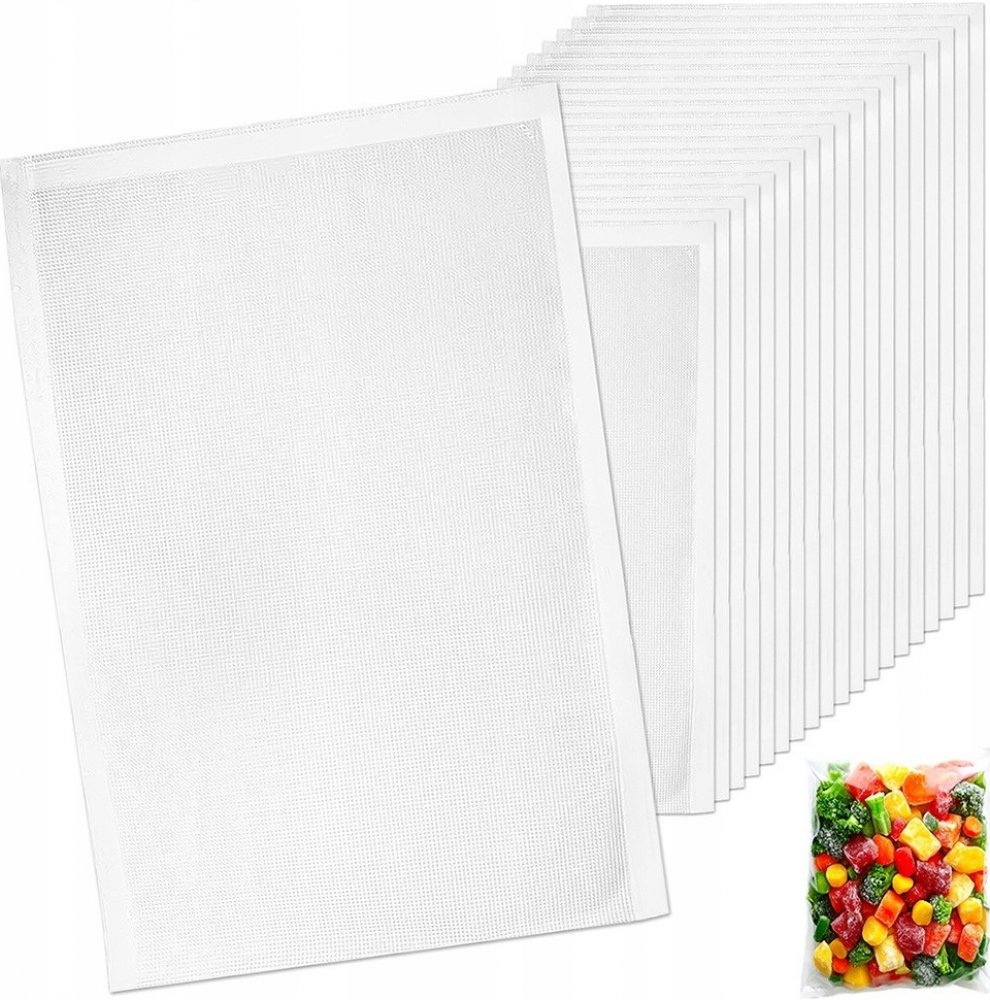 Vakuovací sáček do vakuovaček je vyroben ze speciální odolné fólie, kterou lze umýt a opakovaně použít. Je vhodný do mrazničky, ledničky i pro moderní přípravu jídla metodou Sous-vide (vaření potravin, které jsou zavakuované bez přístupu vzduchu v sáčcích). Použití od -20 °C do +110 °C. Udrží potraviny až 5x déle čerstvé. Jedna strana je transparentní, druhá má speciální vroubky pro snadné a rychl...