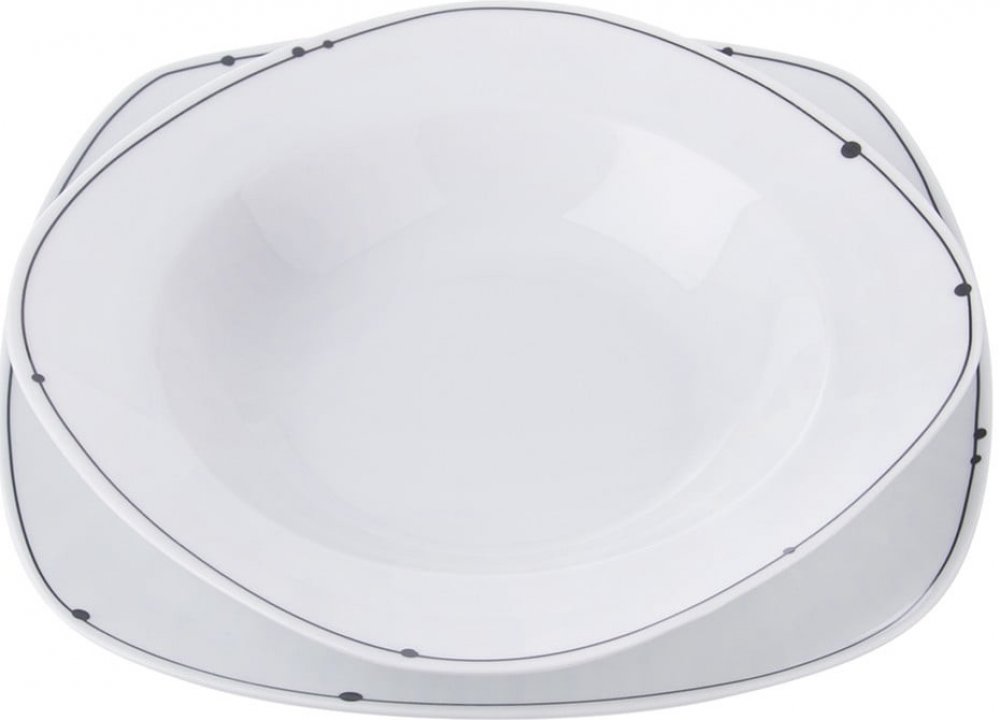 Pokud toužíte po designové jídelní sadě s originálním, a přesto jemným decentním dekorem linky, která vylepší servírování vašeho jídla, máme pro vás tento set 18 porcelánových talířů hranatého tvaru.