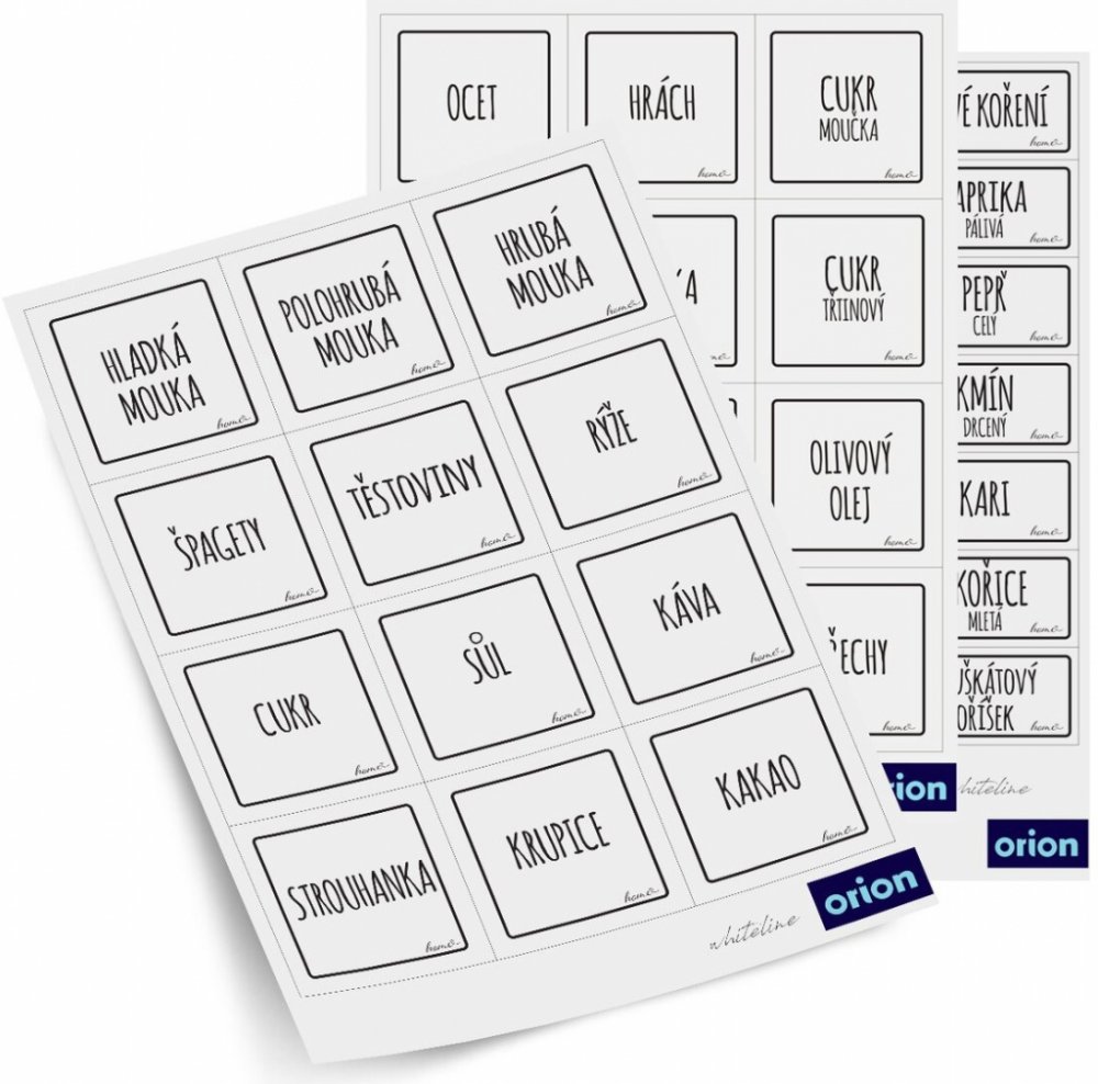 V balení jsou 3 archy (celkem 47 samolepek) s nejpoužívanějšími surovinami, najdete zde např. mouku, cukr, luštěniny, strouhanku, ořechy, ale i různé druhy voňavého koření.