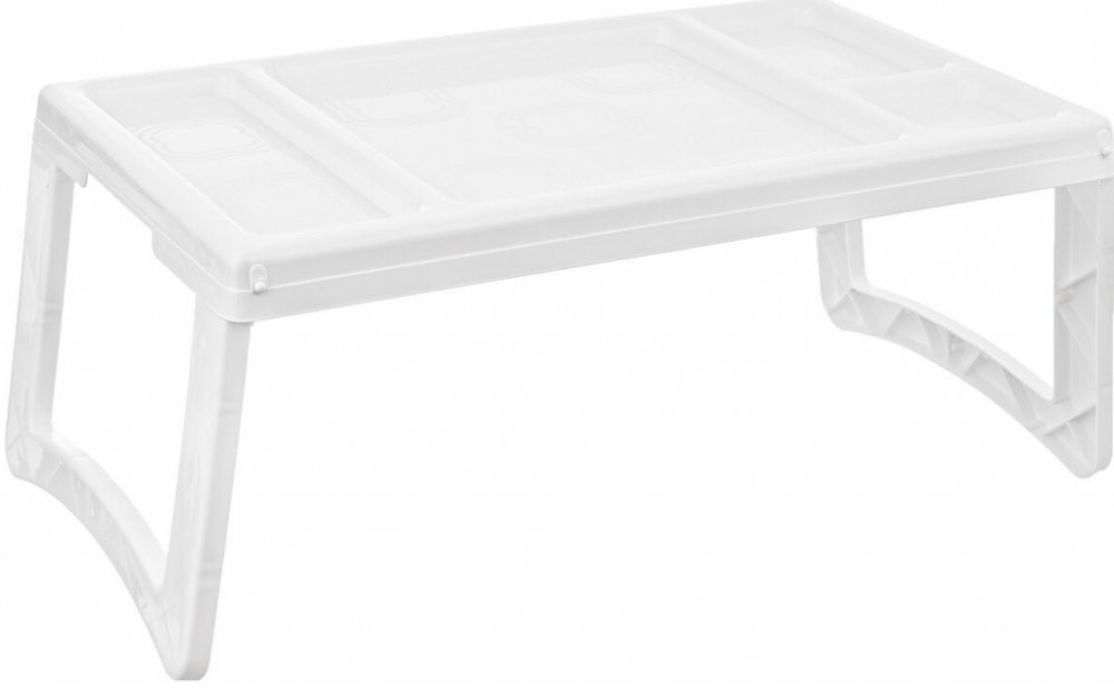 Díky sklopným nožkám je skladný, můžete ho využít i jako klasický servírovací podnos s držadly po stranách a pak jej uložit do skříňky, po sklopení bude mít výšku pouze 6,5 cm.