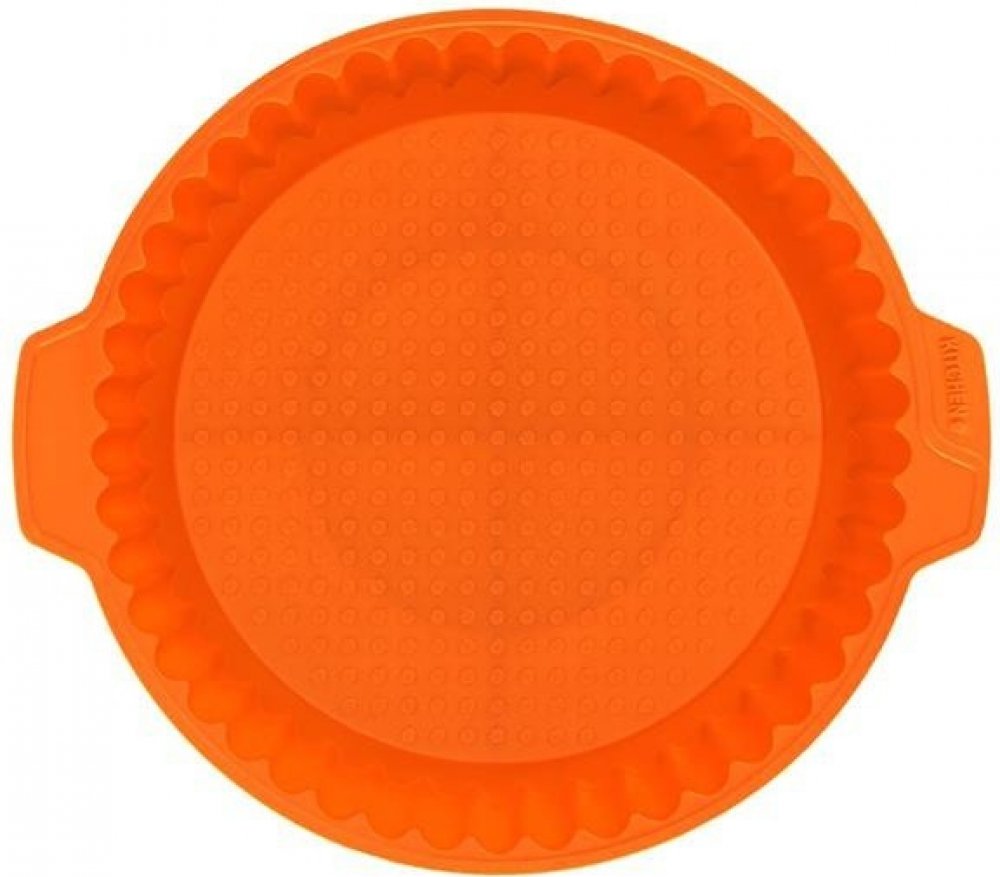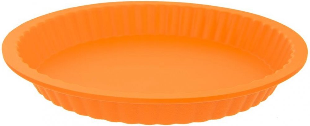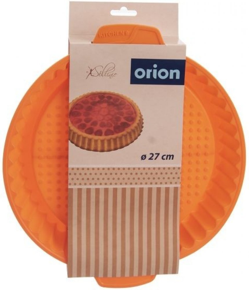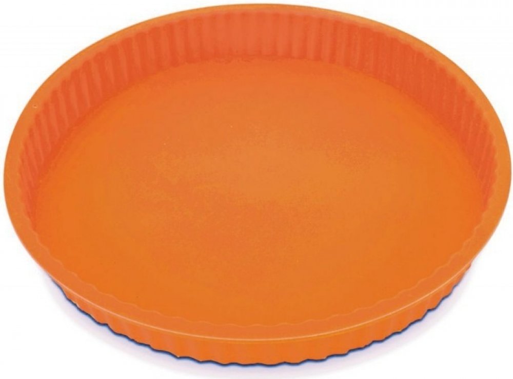 Oranžová silikonová forma o průměru 27 cm s nežádoucími zápachy odolným antiadhézním povrchem pro snadnou přípravu koláčů.