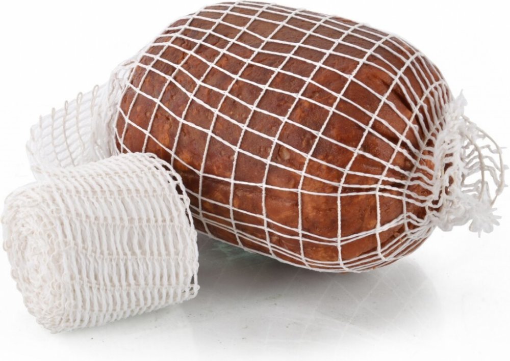 Potravinářská síťka Vám pomůže nejen při přípravě masových rolád a závitků, ale i při uzení masa a ryb. Odpadá zdlouhavé vyvazování masa a maso bezpečně drží svůj tvar. Síťku navlékáme přímo na maso nebo si pomůžeme jejím navléknutím na dutý válec (využijete různé odříznuté PET lahve). Podle potřeby síťku odříznete a zavážete. Odolná teplotám do 225 °C. Materiál: guma, polyester. Rozměry: max. pr. 15 cm, d. 5 m.
