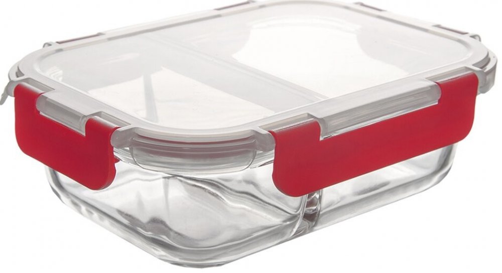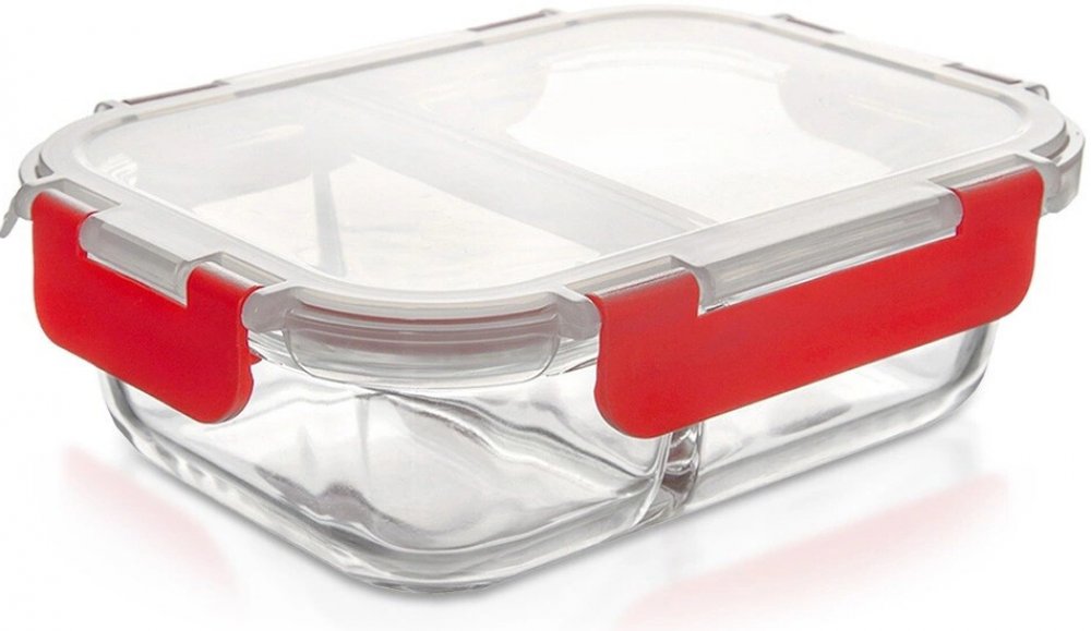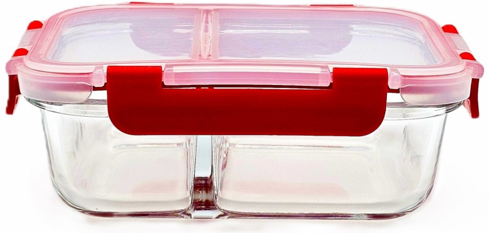 Tato praktická skleněná nádoba s plastovým víkem a silikonovým těsněním je ideálním řešením pro uchovávání a přenášení různých druhů pokrmů. Díky dvěma odděleným přihrádkám s vlastními silikonovými těsněními zůstávají chutě jednotlivých jídel dokonale oddělené. Vyrobena je z kvalitního borosilikátového skla, které odolá teplotám od –20 °C až do +300 °C, takže ji můžete bezpečně používat v troubě (bez víčka), mikrovlnné troubě (také bez víčka), lednici i mrazáku. Plastové víko snese teploty do 90 °C a díky spolehlivému silikonovému těsnění udrží obsah čerstvý a bezpečně uzavřený. Nádobu lze snadno mýt v myčce na nádobí, což z ní dělá skvělého parťáka pro každodenní použití doma i na cestách. Ideální na obědy do práce, pikniky nebo skladování zbytků!