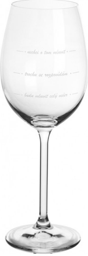 Vychutnejte si váš oblíbený nápoj ve stylových sklenicích. Sklenice CELÝ VEČER má objem 450 ml a hodí se k podávání výraznějšího bílého, ale i středně těžkého červeného vína. Originální dekor pochází z rukou Orion designérů, díky čemuž bude krásným dárkem pro vaše blízké, přátele nebo kolegy. Je vyrobená z kvalitního křišťálového skla Bohemia Crystal, za jehož výrobou stojí česká sklárna Crystalex. Kalich je na vysoké stopce, aby víno zbytečně neteplalo dotykem rukou a mohlo se s ním lehce zakroužit. Lze mýt v myčce na nádobí, ale je nutné použití jemných čisticích prostředků určených na sklo a pečlivě sklenice rovnat do myčky, aby ostatní předměty sklenice nepoškodily. Častým mytím v myčce může dojít k postupnému smývání dekoru, což nemůže být předmětem reklamace.