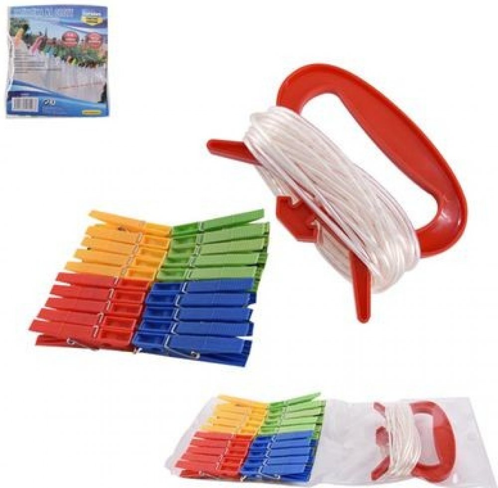 Nepostradatelná taštička na cestách - sada 20ks barevných kolíčků a 5 m prádelní šňůry