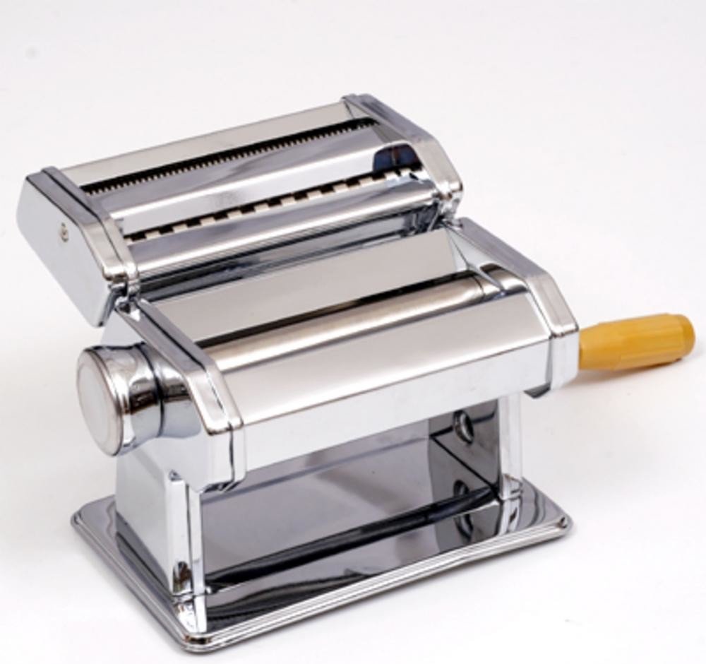 Nerezový mechanický strojek na vyválení těsta a řezání těstovin ve dvou šířích. Domácí polévkové nudle a široké přílohové nudle. Samotnou tloušťku těsta lze regulovat otočením bočního kolečka od 3 mm až po tenké, skoro průhledné pásy těsta tloušťky 0,5 mm. Takto připravené pláty se hodí na vynikající domácí lasagně nebo na další zpracování. Nástavec vykouzlí díky několika otočením vložené kliky kl...
