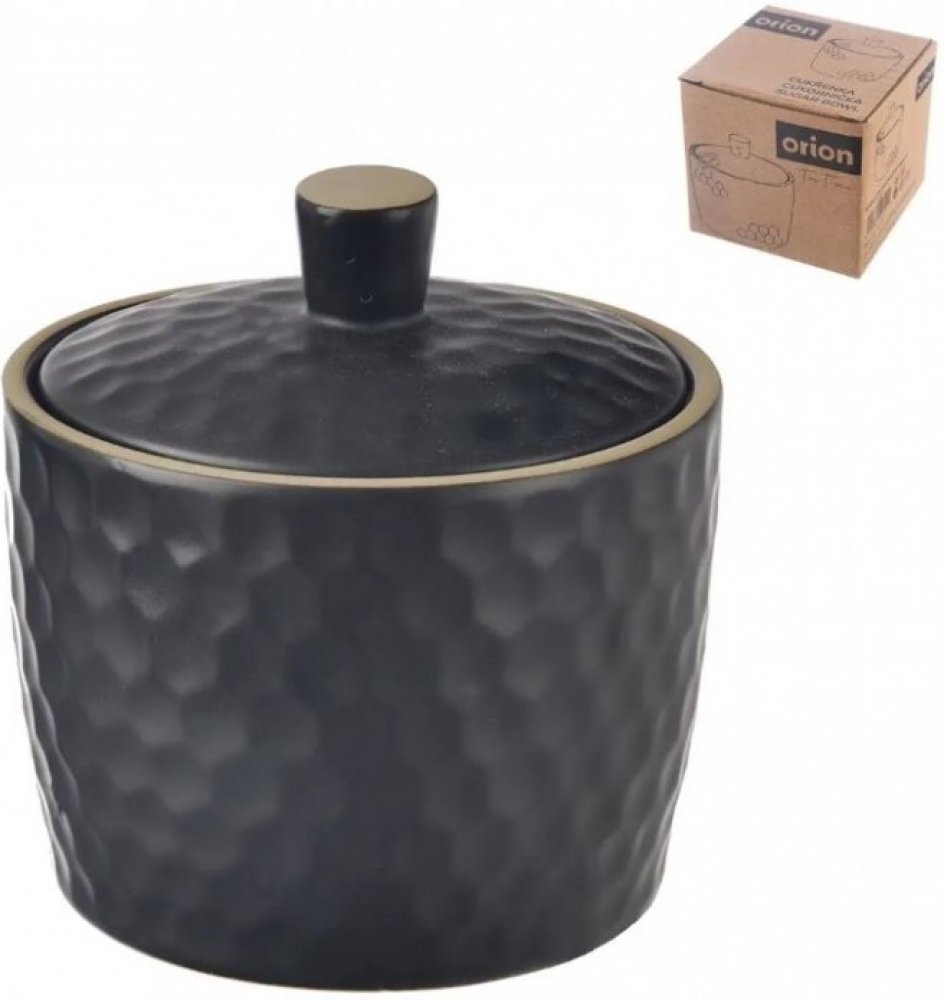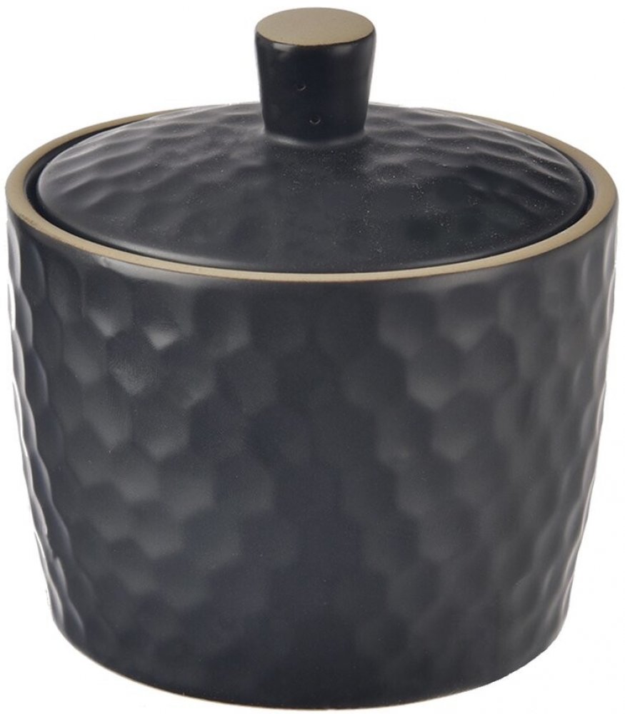 Rozměry: pr. 10 cm, v. 10 cm Cukřenka v moderním designu ozvláštní servírování kávy nebo čaje. Matný černý povrch kombinovaný se světlou obvodovou linkou a plastický dekor z ní dělá velmi výjimečný kousek. Materiál: kamenina s černou glazurou. Rozměry: pr. 10 cm, v. 10 cm. Vhodná do myčky i MVT.