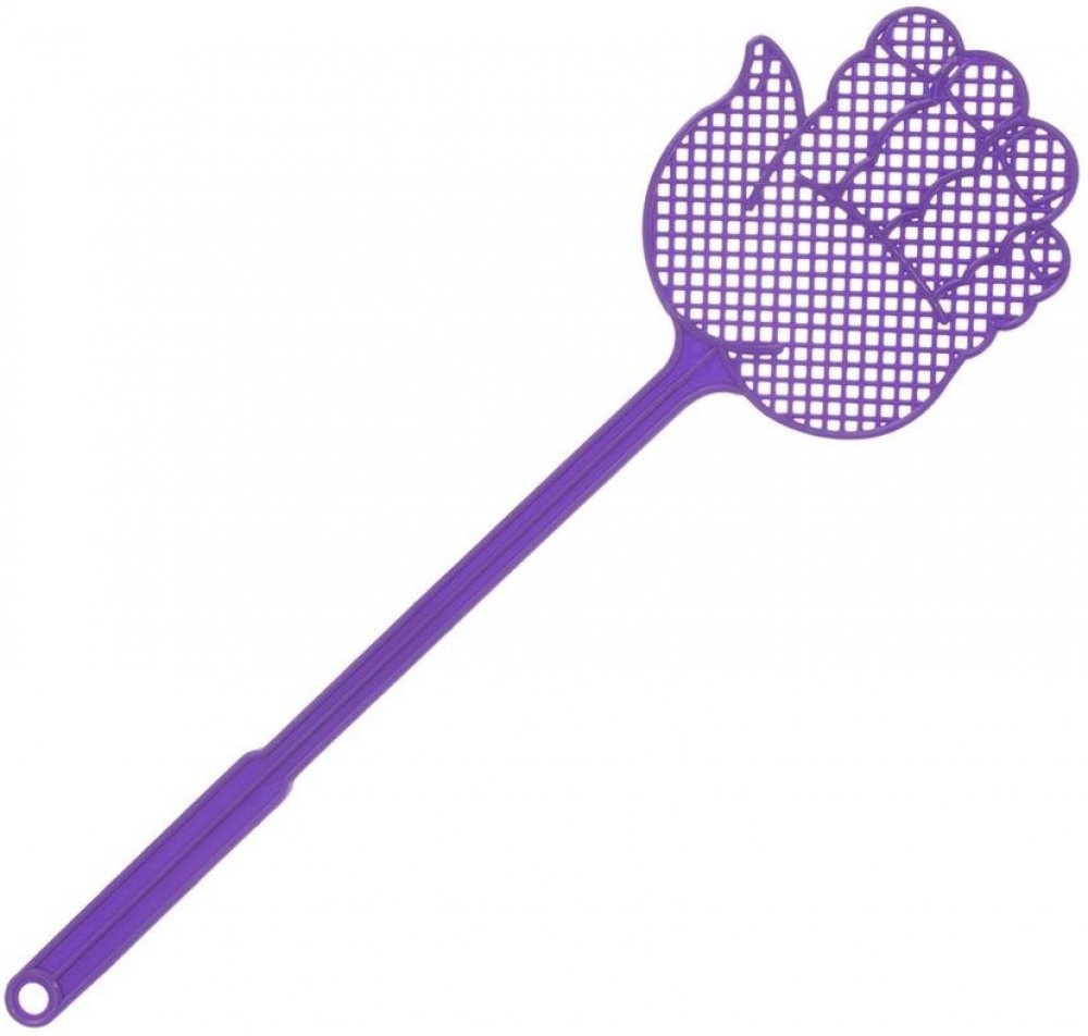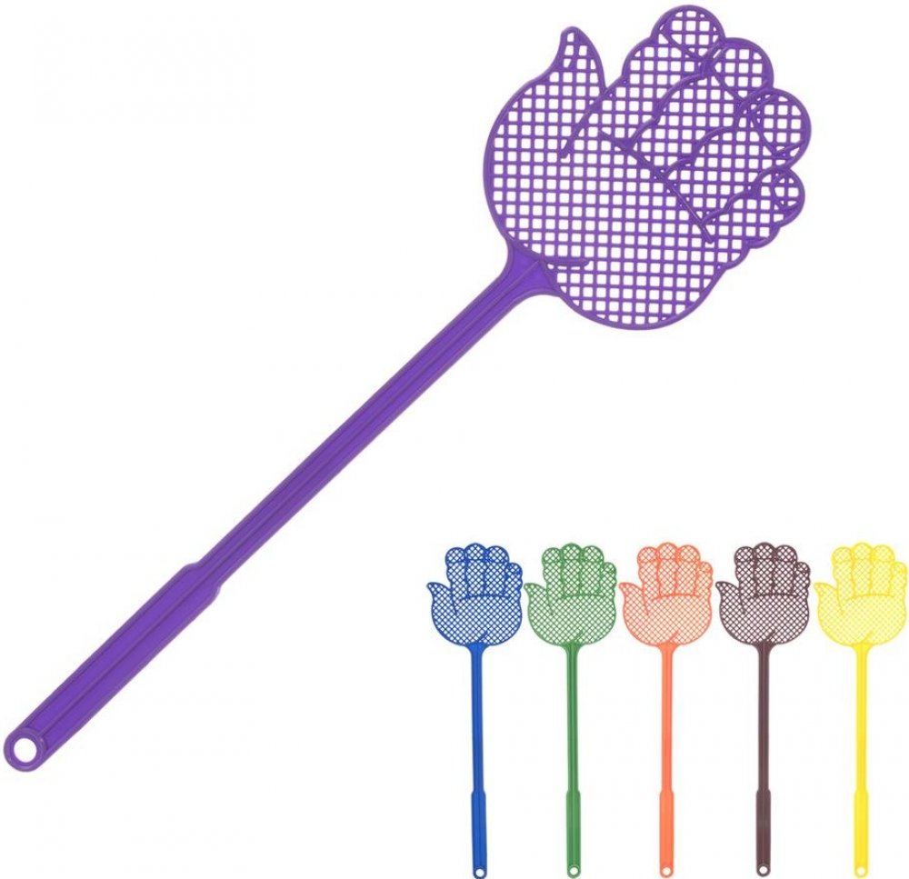 Plácačka na mouchy ve tvaru RUKA. Barevný assort. Materiál: plast. Možnost zavěšení. Rozměry: d. 41,5 cm, š. 11 cm.