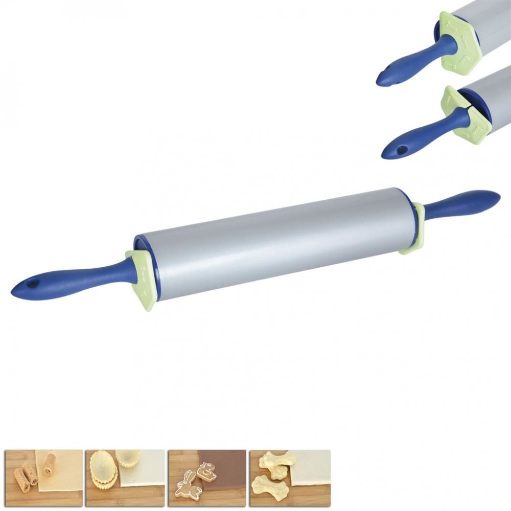 Váleček na těsto s postranními zarážkami, díky kterým si můžete zvolit 4 síly vyváleného těsta. Těsto bude rozválené rovnoměrně a přesně v síle 2/4/6/8 mm. Ale pootočením válečku můžete vyválet těsto i bez využití těchto zarážek. Materiál: kov s nepřilnavou úpravou, plast. Těsto se na povrch nelepí, můžete použít jen minimální množství mouky. Snadná údržba. Lze mýt v myčce na nádobí. Rozměry: pr. 6 cm, d. 25/50 cm.