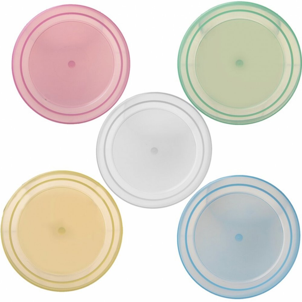 Víčko kulaté na sklenice Omnia. Stačí nasadit a potraviny neoschnou, nepřejímají chutě od jiných uložených potravin. Uchováte pohodlně nespotřebované zavařeniny, kompoty a neničíte opakovaným nasazováním zavařovací víčka. Lze je použít také na misky s odpovídajícím průměrem. Materiál: plast LDPE natur. Barevný assort. Sada 5 ks. Rozměry: pr. 6,5 cm, v.0,8 cm.