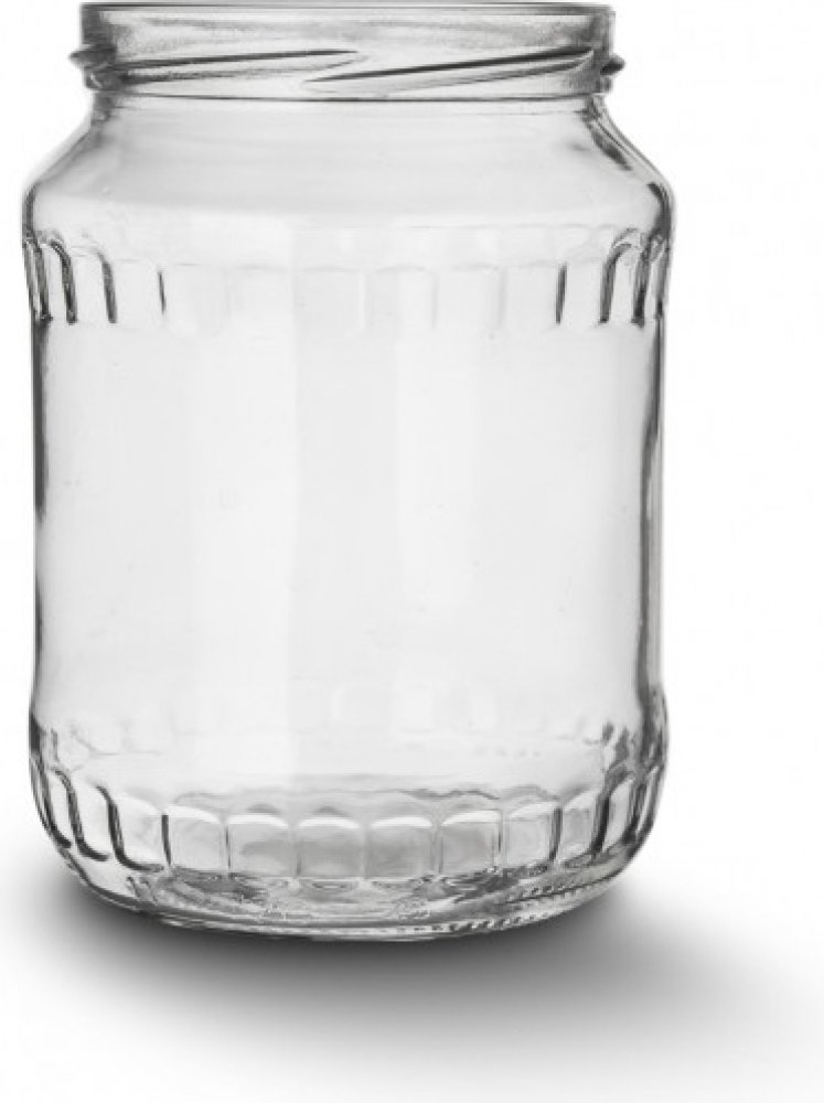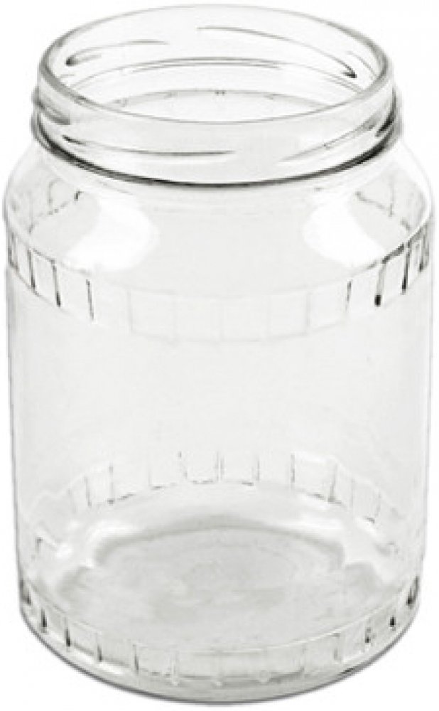 Zavařovací sklenice o objemu 0,72 l se šroubovacím závitem na horní hraně.