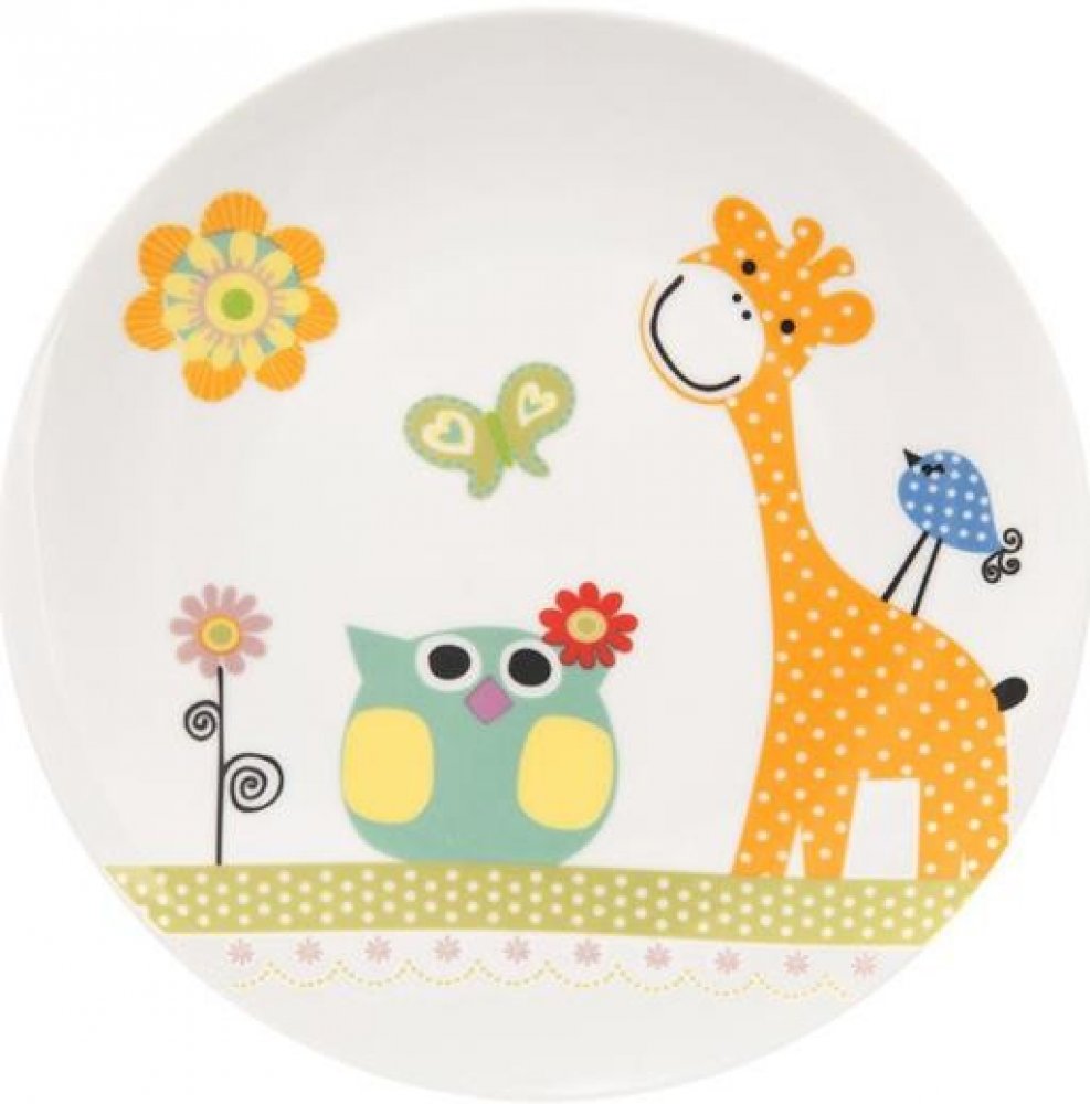 Mělký talířek pro malé nezbedy, který je potěší motivem žirafy a její kamarádky sovičky. Děti si tak vychutnají hlavní chod, tak i svačinku, toast, ovoce či zeleninu. A jestliže nechtějí baštit, motivujte je tím, že až dojí, uvidí roztomilé kamarády.Pokud chystáte dětskou párty, hodí se talířek na křupky nebo kousky melounu. A když dětem jednou za čas naservírujete nějakou sladkou dobrotu, dortík nebo sušenky, tak se po nich jen zapráší.Lze jej mýt v myčce nádobí. Určen pro děti od 3 let.