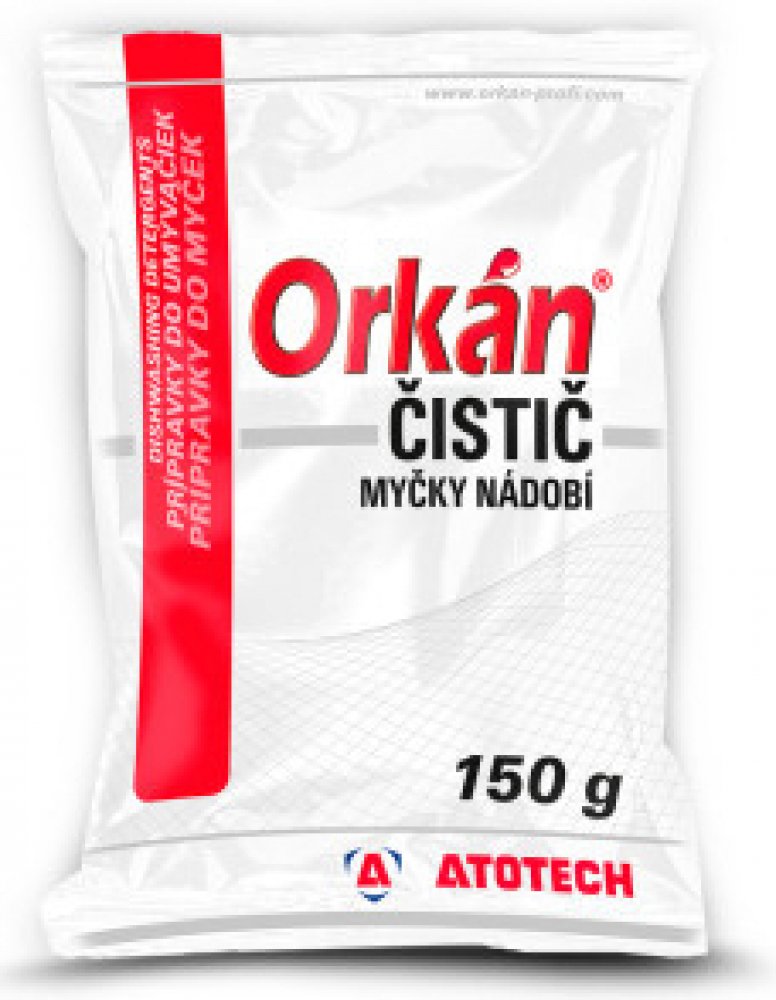 Orkán® čistič je vysoce účinný práškový čisticí prostředek myček na bázi aktivního chlóru určený pro čištění profesionálních i domácích myček nádobí. Svým složením spolehlivě odstraňuje mastnoty a usazeniny z celého mycího systému, včetně těžko přístupných míst, a zajišťuje sanitační účinek.